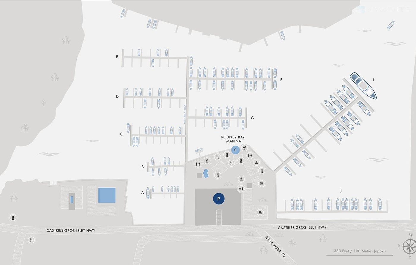 6-cabin catamaran Leopard 40 - Moorings 18 was built in 2018, and it is docked in Rodney Bay Marina, Caribbean.