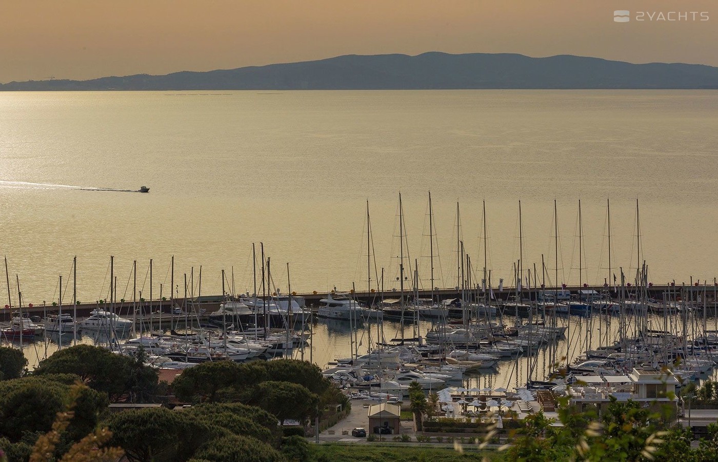 3-cabin sailing yacht Bavaria Cruiser 34 - Olympia was built in 2018, and it is docked in Marina di Scarlino, Italy.