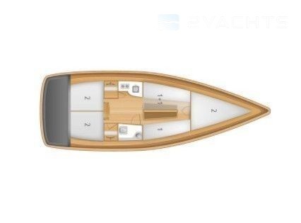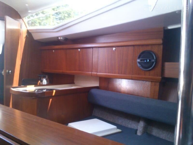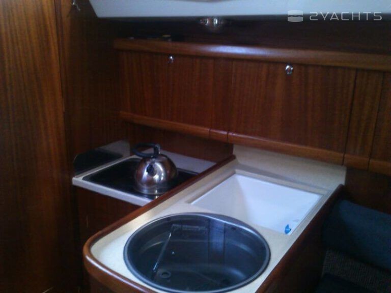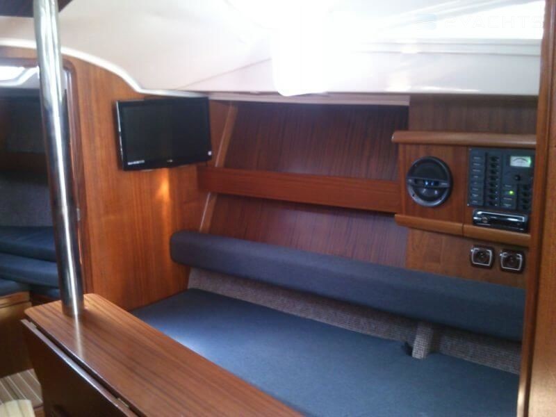 Boat equipment features classical mainsail and bow thruster. It also boasts a flat screen tv, heating, an audio system, dvd player and inside speakers. The fully-equipped galley includes a cooker, sink and kitchen utensils.