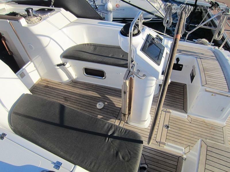 Boat equipment features classical mainsail, bimini and outside gps plotter. It also boasts an an audio system and inside speakers. The fully-equipped galley includes an oven, cooker, sink and kitchen utensils.
