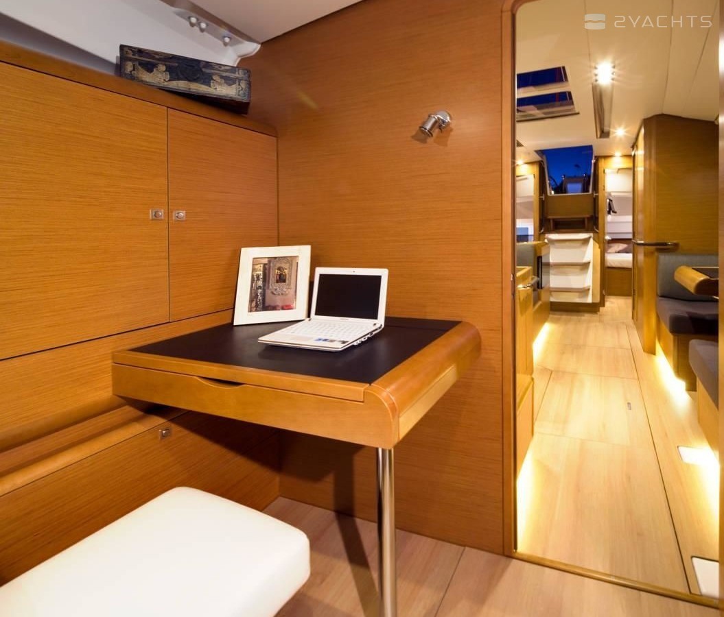Boat equipment features classical mainsail, salon gps plotter, bimini and bathing platform. It also boasts an an audio system, outside speakers and inside speakers. The fully-equipped galley includes an oven, cooker, sink and kitchen utensils.