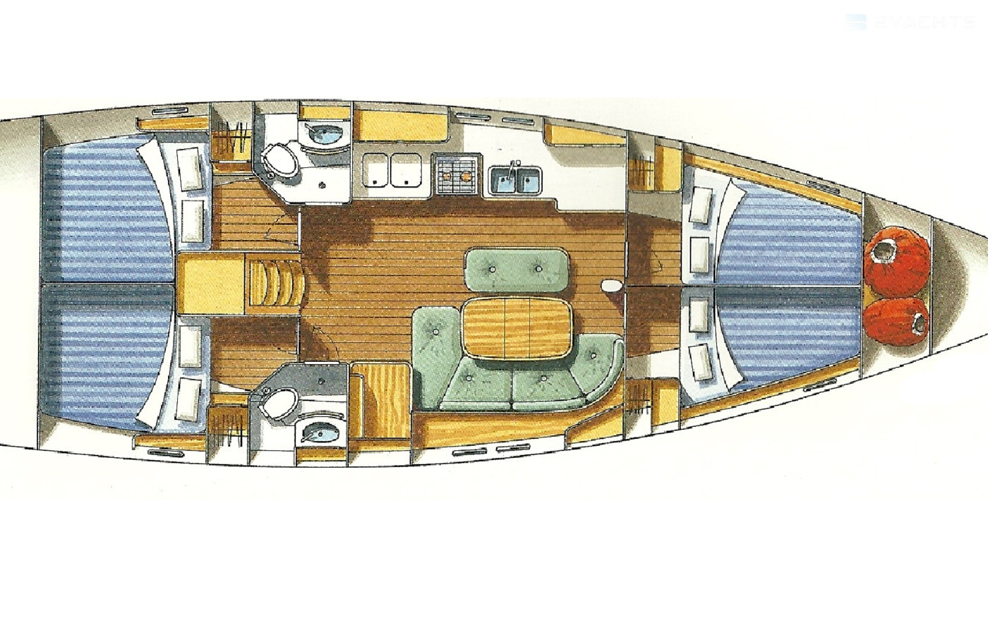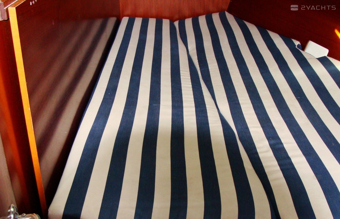 Boat equipment features rolling mainsail, salon gps plotter and bimini. It also boasts an an audio system, outside speakers and inside speakers. The fully-equipped galley includes an oven, cooker, sink and kitchen utensils.