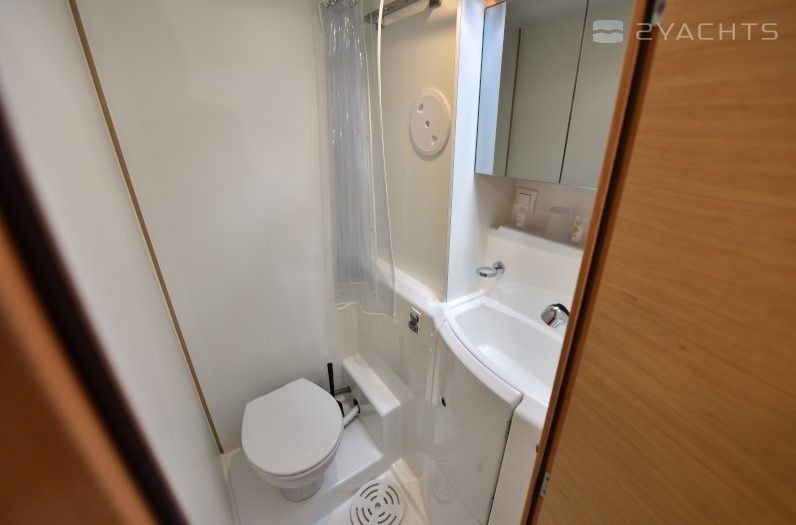 Boat equipment features classical mainsail, bbq, bimini and outside gps plotter. It also boasts an an audio system, outside speakers and inside speakers. The fully-equipped galley includes an oven, cooker, sink and kitchen utensils.
