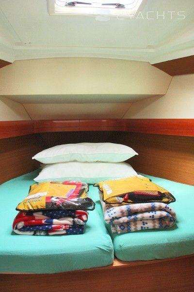 Boat equipment features classical mainsail, solar panels, salon gps plotter, bimini and bathing platform. It also boasts an an audio system and inside speakers. The fully-equipped galley includes an oven, cooker, sink and kitchen utensils.