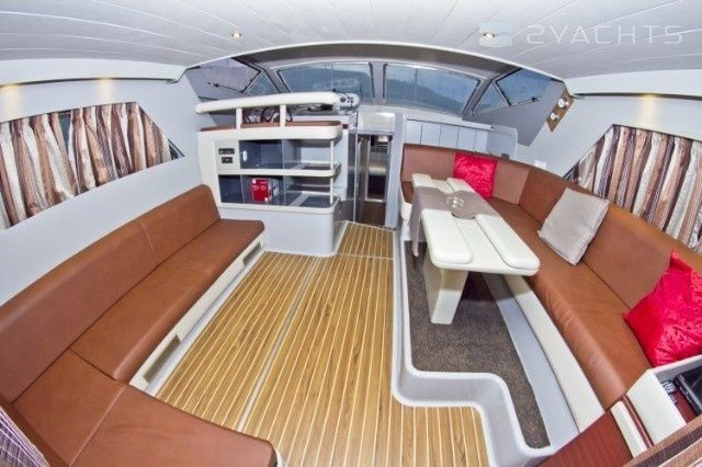 Boat equipment features generator, salon gps plotter, bimini and bow thruster. It also boasts a flat screen tv, heating, air conditioning, an audio system and dvd player. The fully-equipped galley includes an ice maker, coffee machine, oven, cooker and sink.