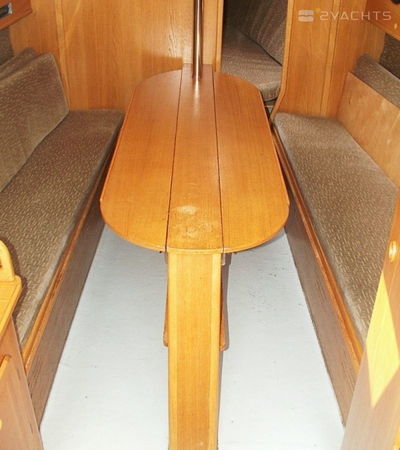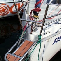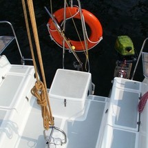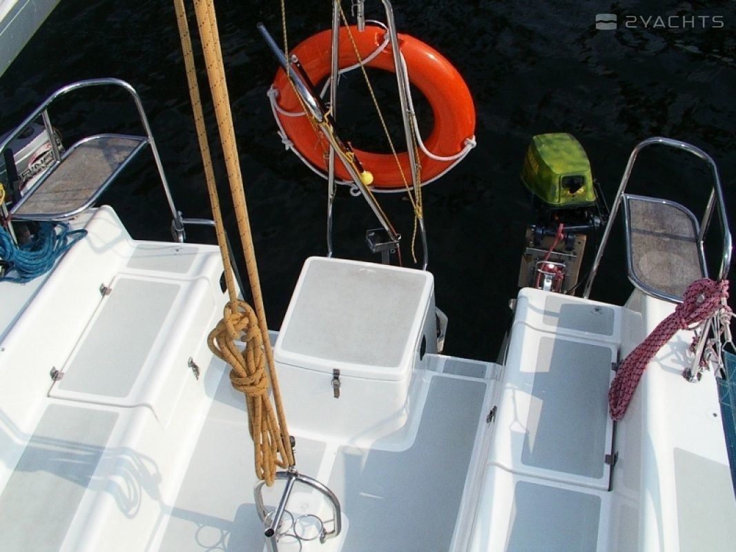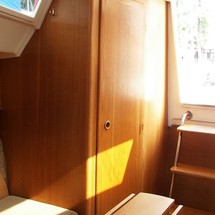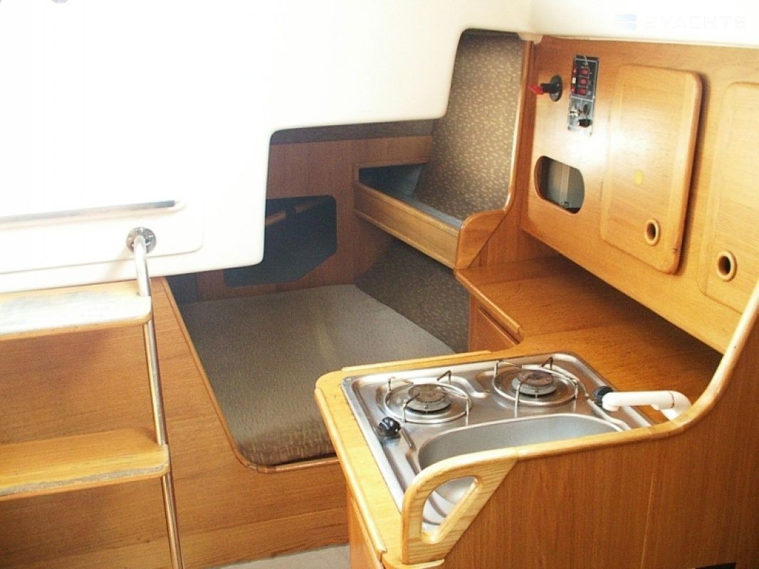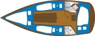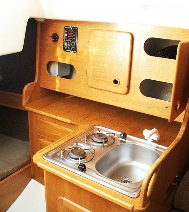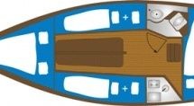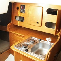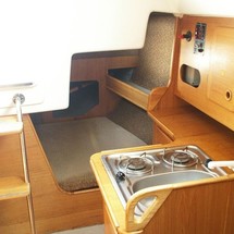 Boat equipment features classical mainsail. It also boasts an an audio system and inside speakers. The fully-equipped galley includes a cooker, sink and kitchen utensils.