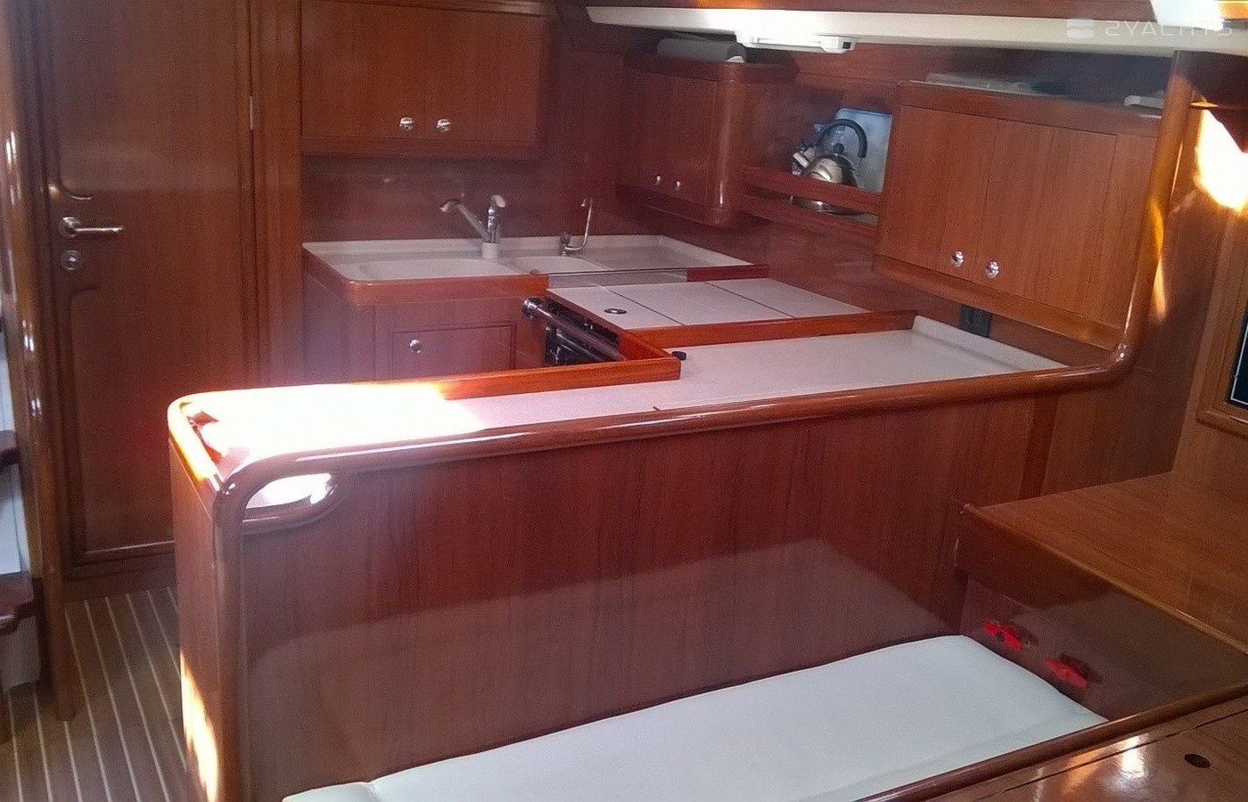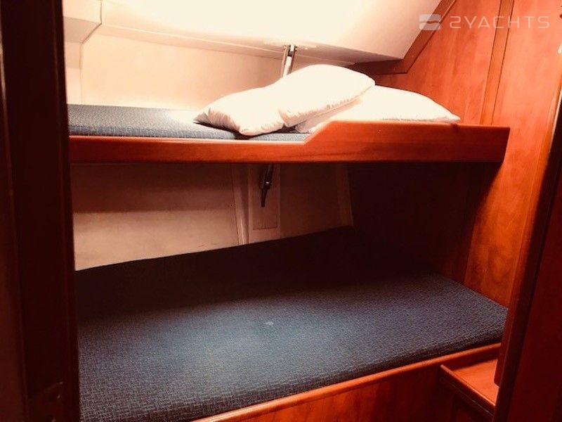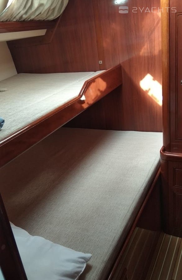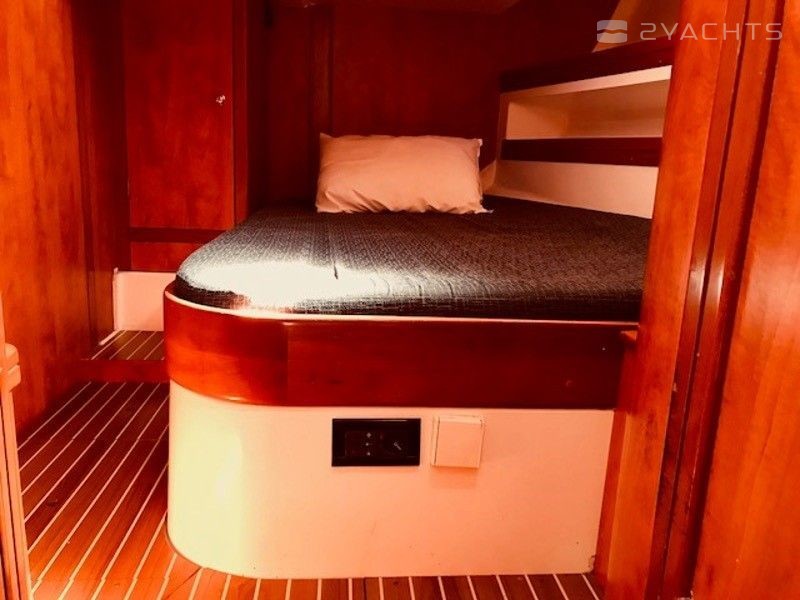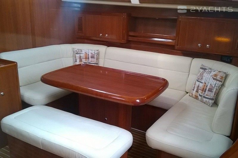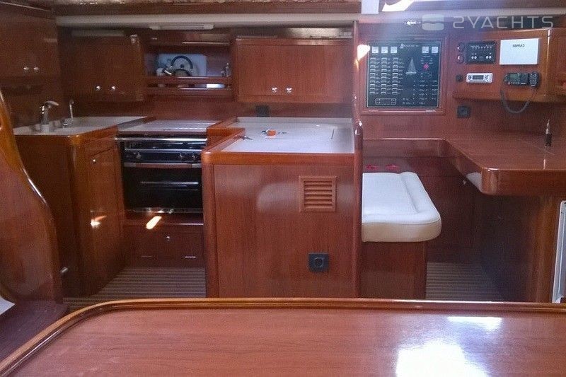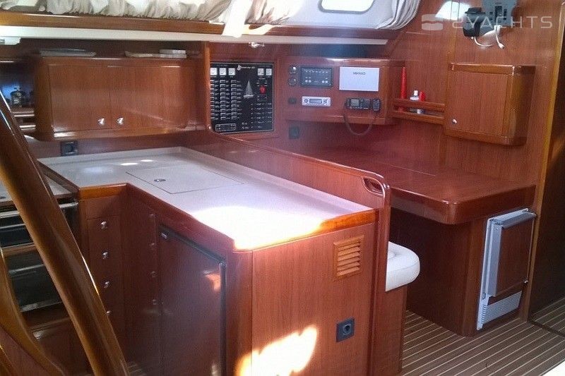 Boat equipment features rolling mainsail, generator, salon gps plotter, bimini and bow thruster. It also boasts a flat screen tv, air conditioning, an audio system, outside speakers and inside speakers. The fully-equipped galley includes a microwave, freezer, oven, cooker and sink.