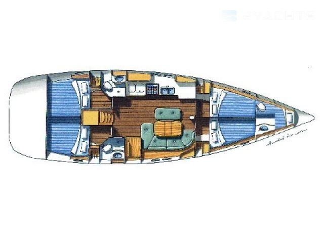 Boat equipment features rolling mainsail, solar panels, salon gps plotter, bimini and bow thruster. It also boasts a flat screen tv, an audio system, dvd player, outside speakers and inside speakers. The fully-equipped galley includes an ice maker, freezer, oven, cooker and sink.