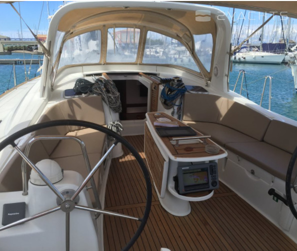 Boat equipment features classical mainsail, electric winches, solar panels, generator, salon gps plotter and bimini. It also boasts a flat screen tv, heating, air conditioning, an audio system and outside speakers. The fully-equipped galley includes a microwave, freezer, oven, cooker and sink.