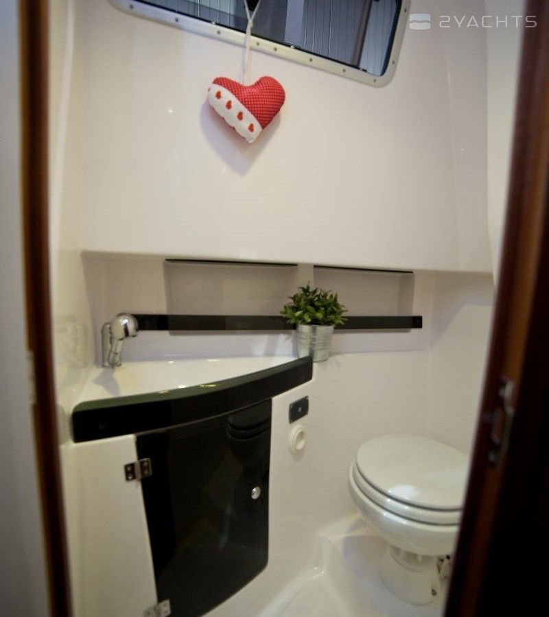 Boat equipment features bimini and bow thruster. It also boasts a flat screen tv, an audio system and inside speakers. The fully-equipped galley includes a microwave, oven, cooker and sink.