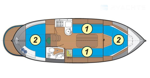 Bornholm can accommodate up to 6 people in 2 double cabins and a saloon with 2 extra beds.