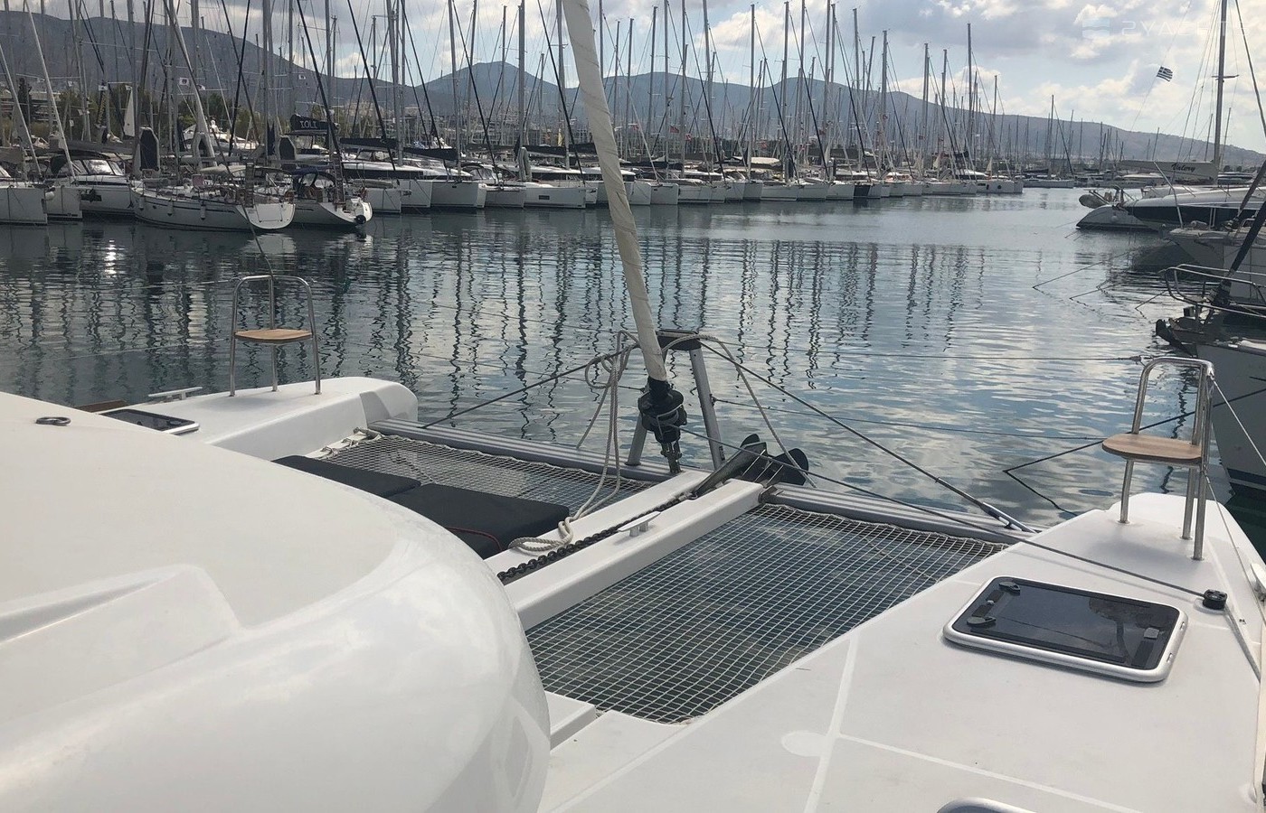 3-cabin catamaran Lagoon 40 - Nereus was built in 2019, and it is docked in Marina Alimos, Greece.