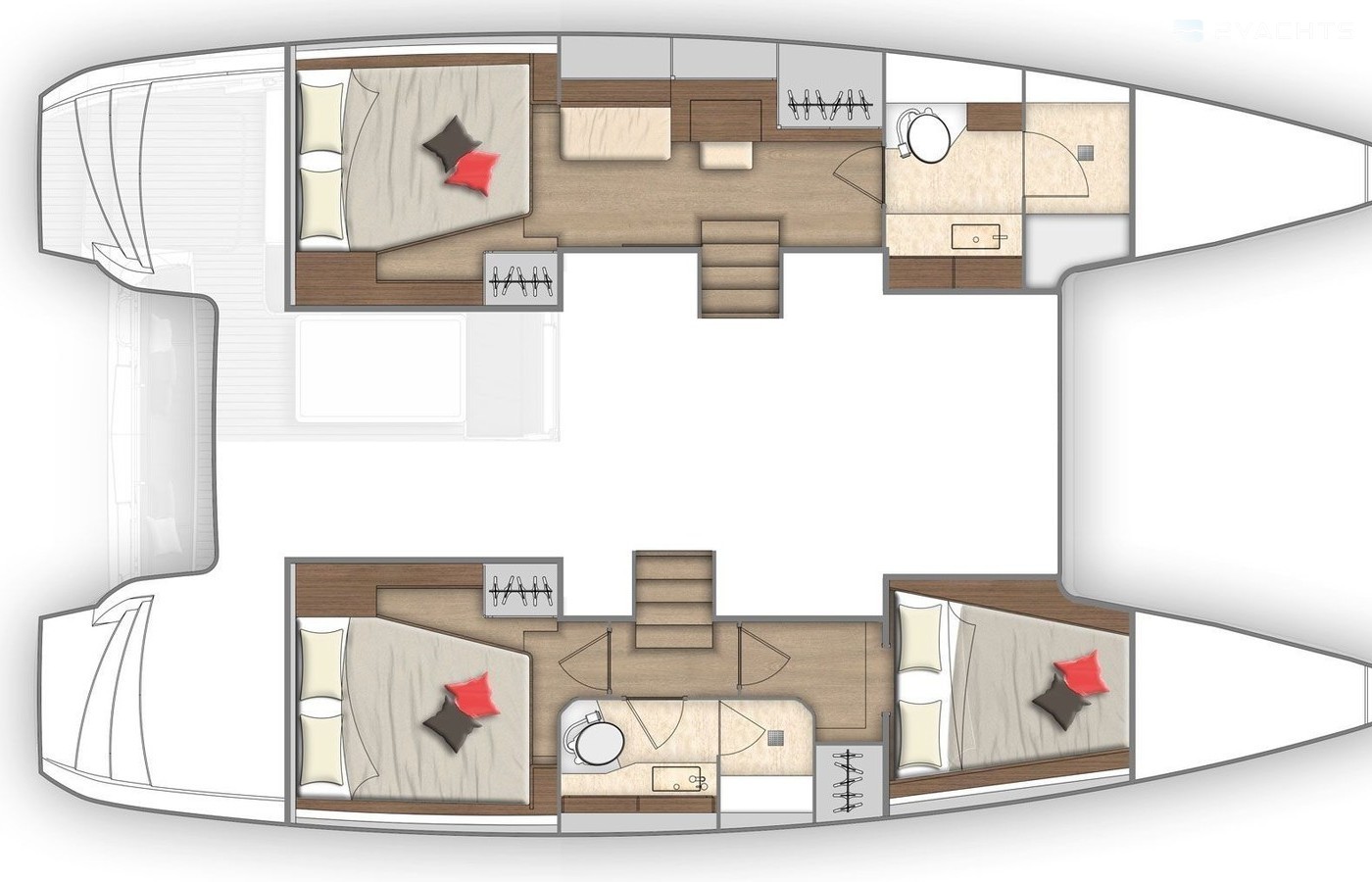 Nereus can accommodate up to 6 people in 3 double cabins. Pillows and blankets are included in the price.
