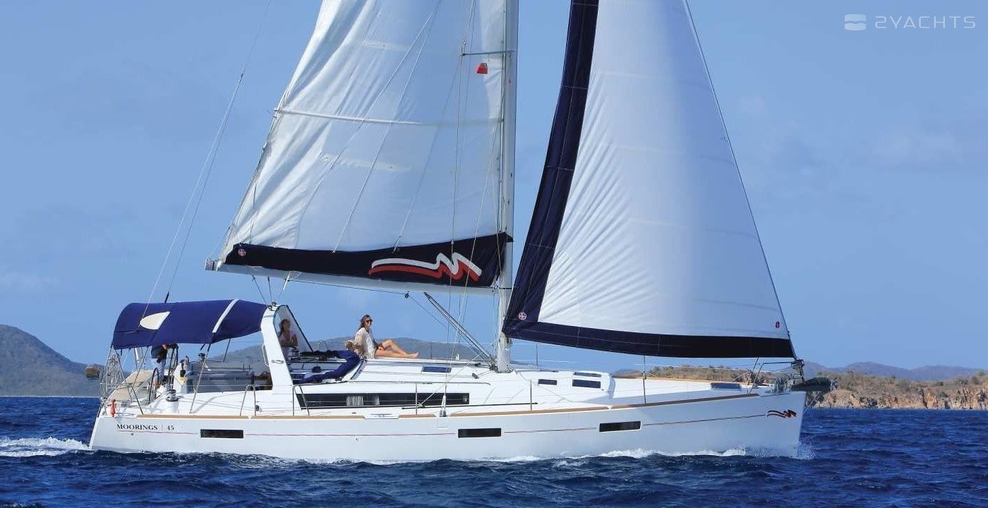 This sailing yacht is operated by the charter company The Moorings.
