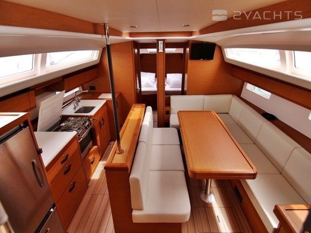 Boat equipment features rolling mainsail, bimini and bow thruster. It also boasts a flat screen tv, an audio system, outside speakers and inside speakers. The fully-equipped galley includes an oven, cooker, sink and kitchen utensils.