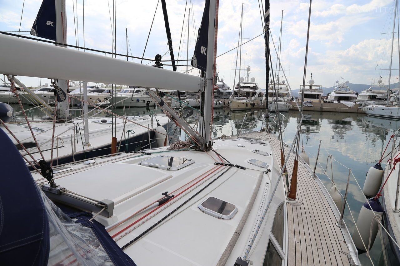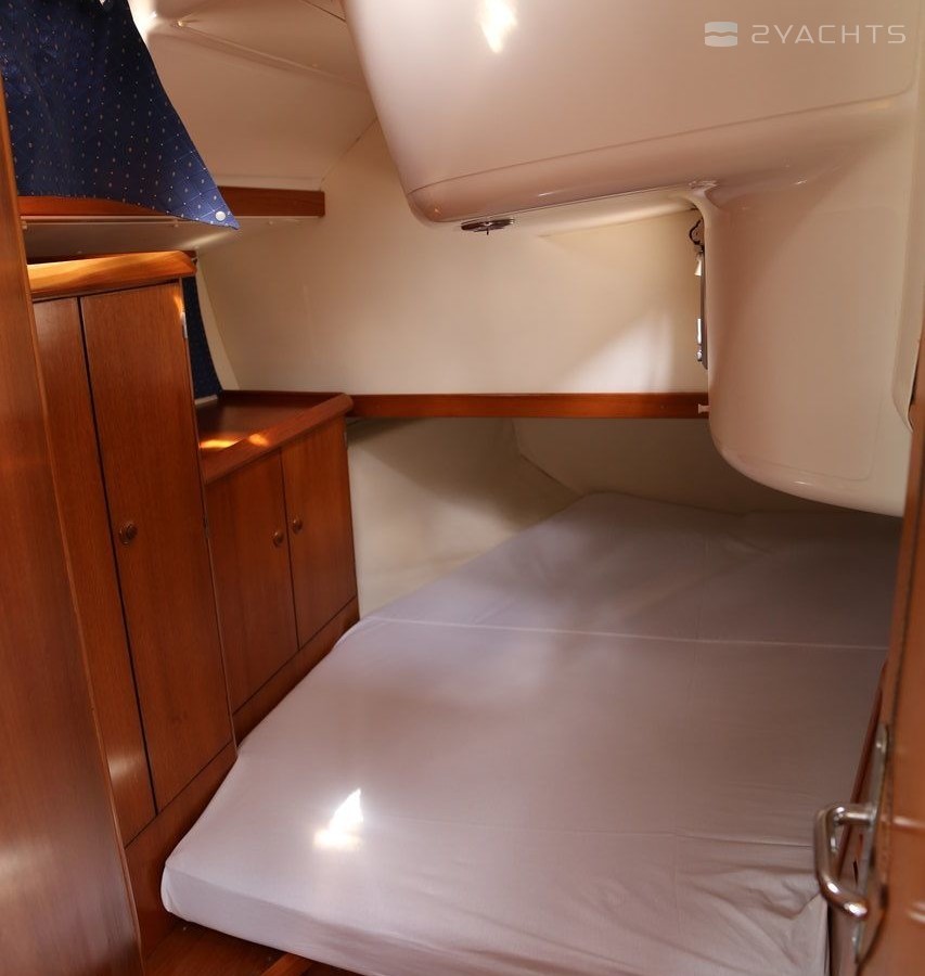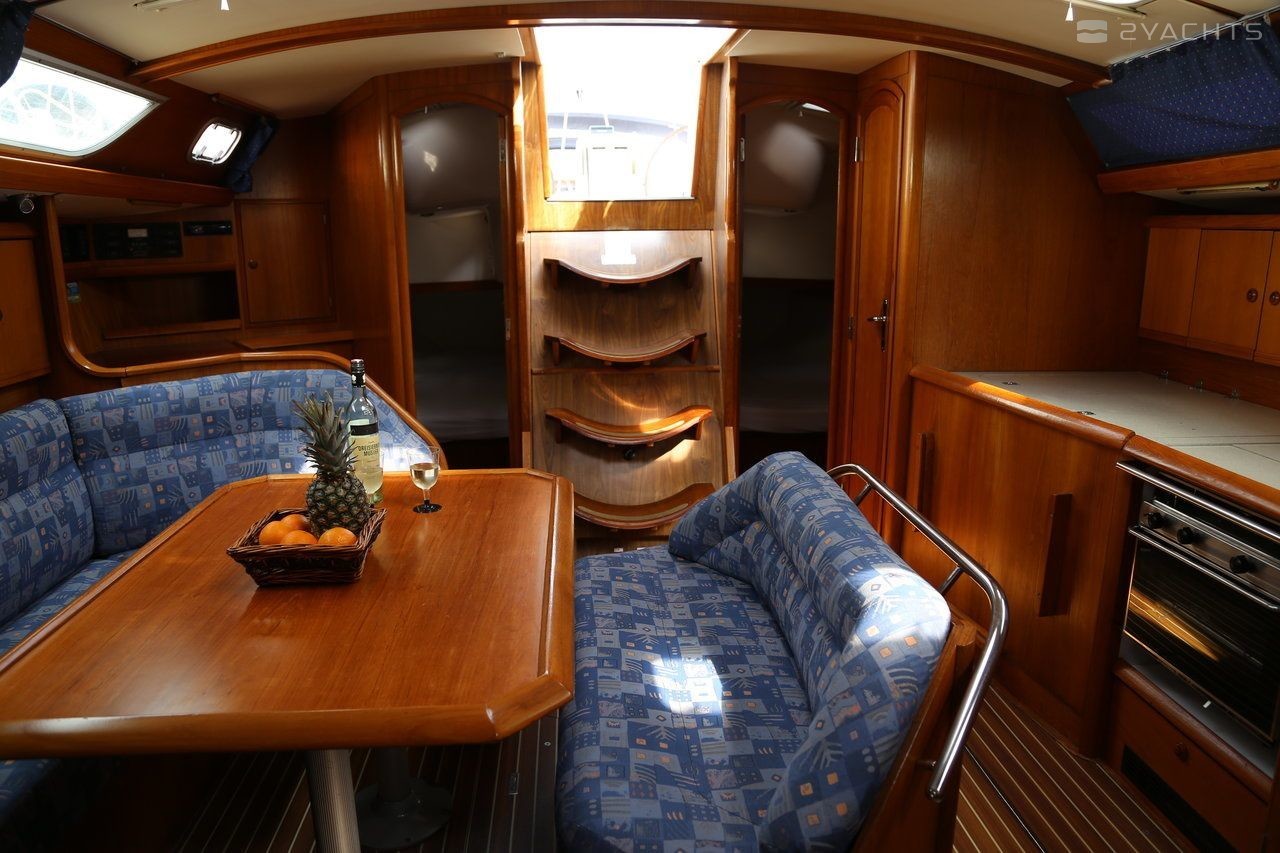 Boat equipment features rolling mainsail, salon gps plotter, bimini and bow thruster. It also boasts a flat screen tv, heating, air conditioning, an audio system and dvd player. The fully-equipped galley includes an oven, cooker, sink and kitchen utensils.