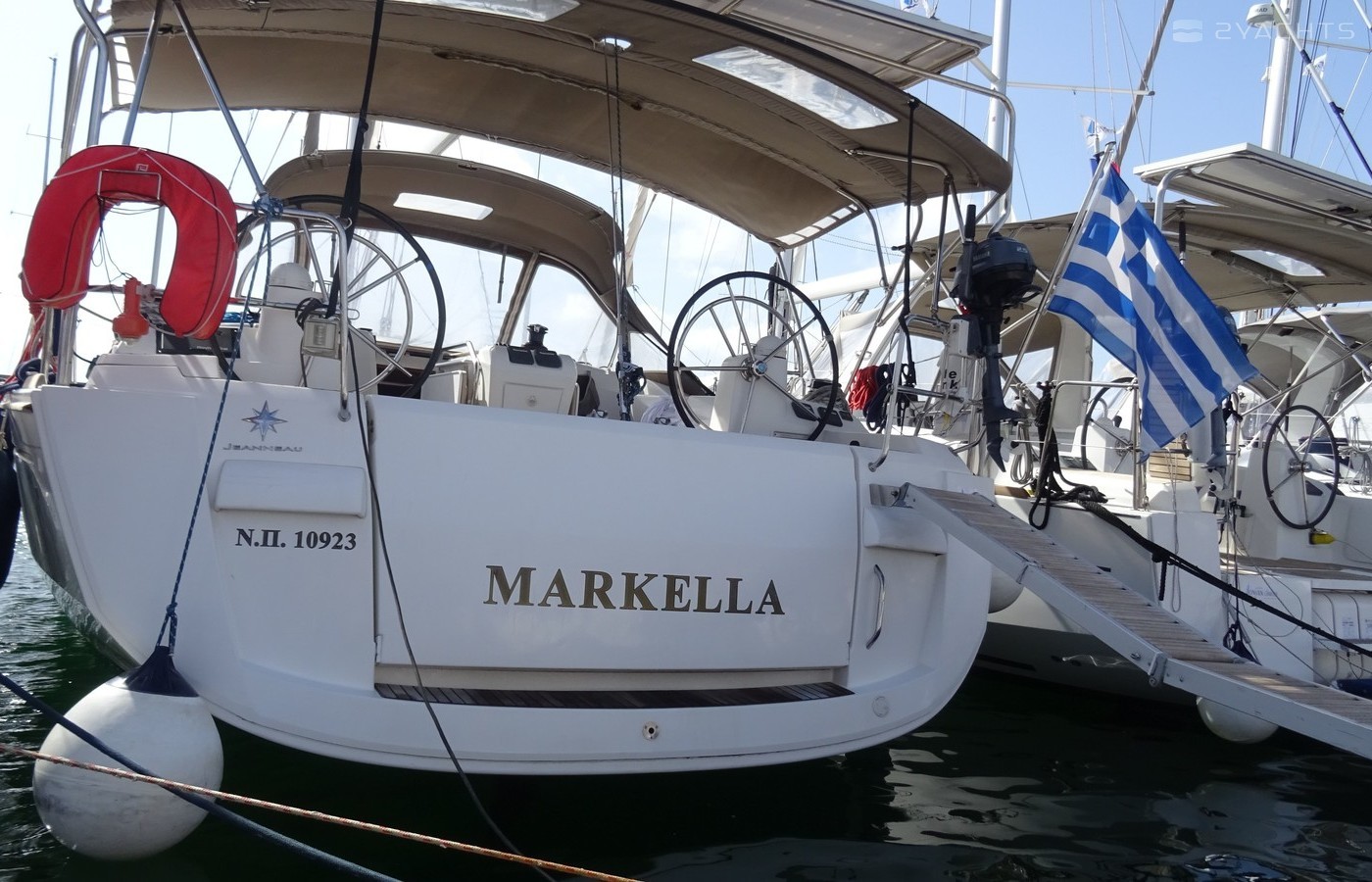 4-cabin sailing yacht Jeanneau Sun Odyssey 469 - Markella was built in 2013, and it is docked in Lefkas Marina, Greece.
