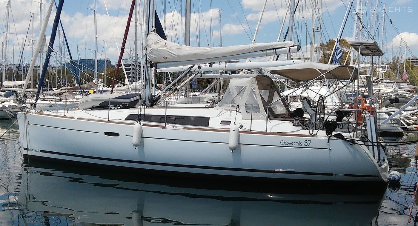 2-cabin sailing yacht Beneteau Oceanis 37 - Boheme was built in 2012, and it is docked in Port Chania, Greece.
