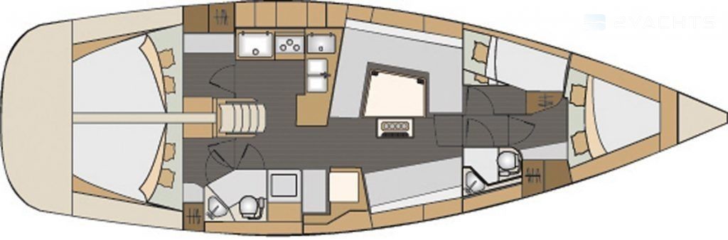 Boat equipment features rolling mainsail, solar panels, salon gps plotter, bimini and bow thruster. It also boasts an an audio system, outside speakers and inside speakers. The fully-equipped galley includes an oven, cooker, sink and kitchen utensils.