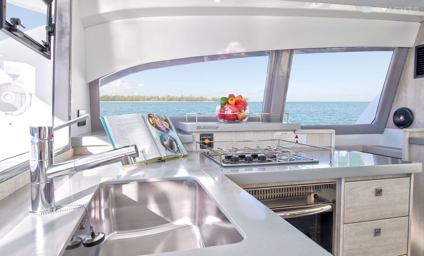 This power catamaran is operated by the charter company The Moorings.