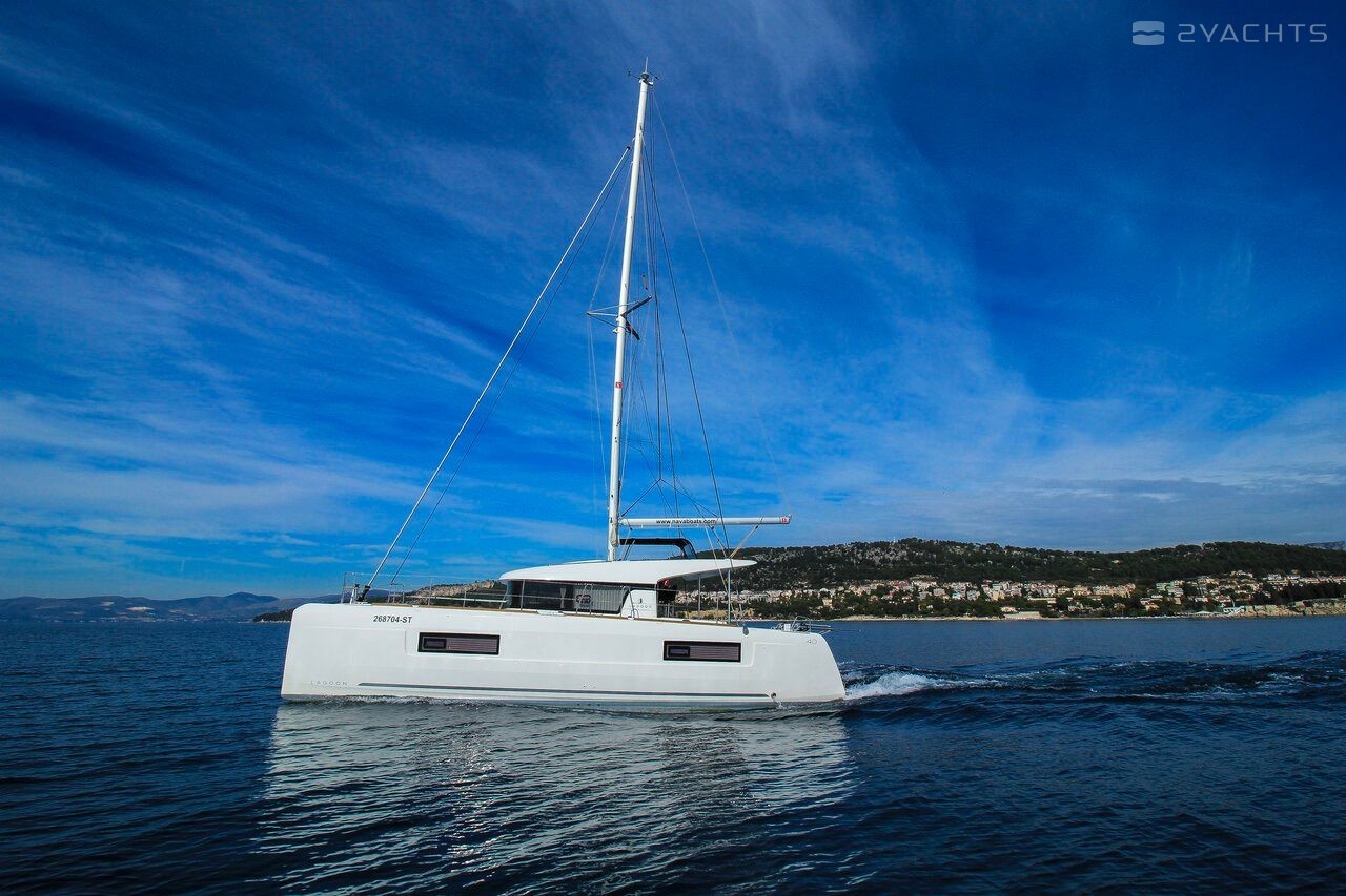 6-cabin catamaran Lagoon 40 - Liquid Spirit was built in 2020, and it is docked in ACI Marina Slano, Croatia.