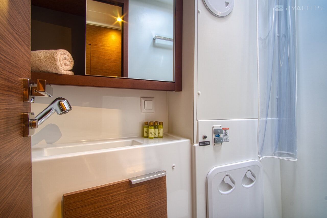 Catamaran Liquid Spirit offers 4 toilets with a shower.