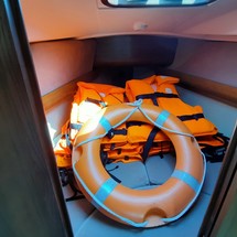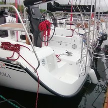 Boat equipment features classical mainsail. It also boasts a heating, an audio system and inside speakers. The fully-equipped galley includes a cooker, sink and kitchen utensils.
