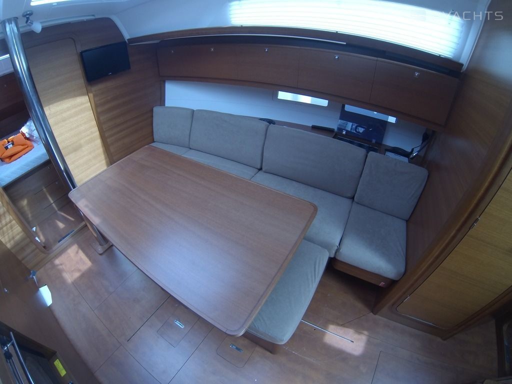 Boat equipment features rolling mainsail, salon gps plotter, bimini and bathing platform. It also boasts a flat screen tv, an audio system, dvd player, outside speakers and inside speakers. The fully-equipped galley includes an oven, cooker, sink and kitchen utensils.
