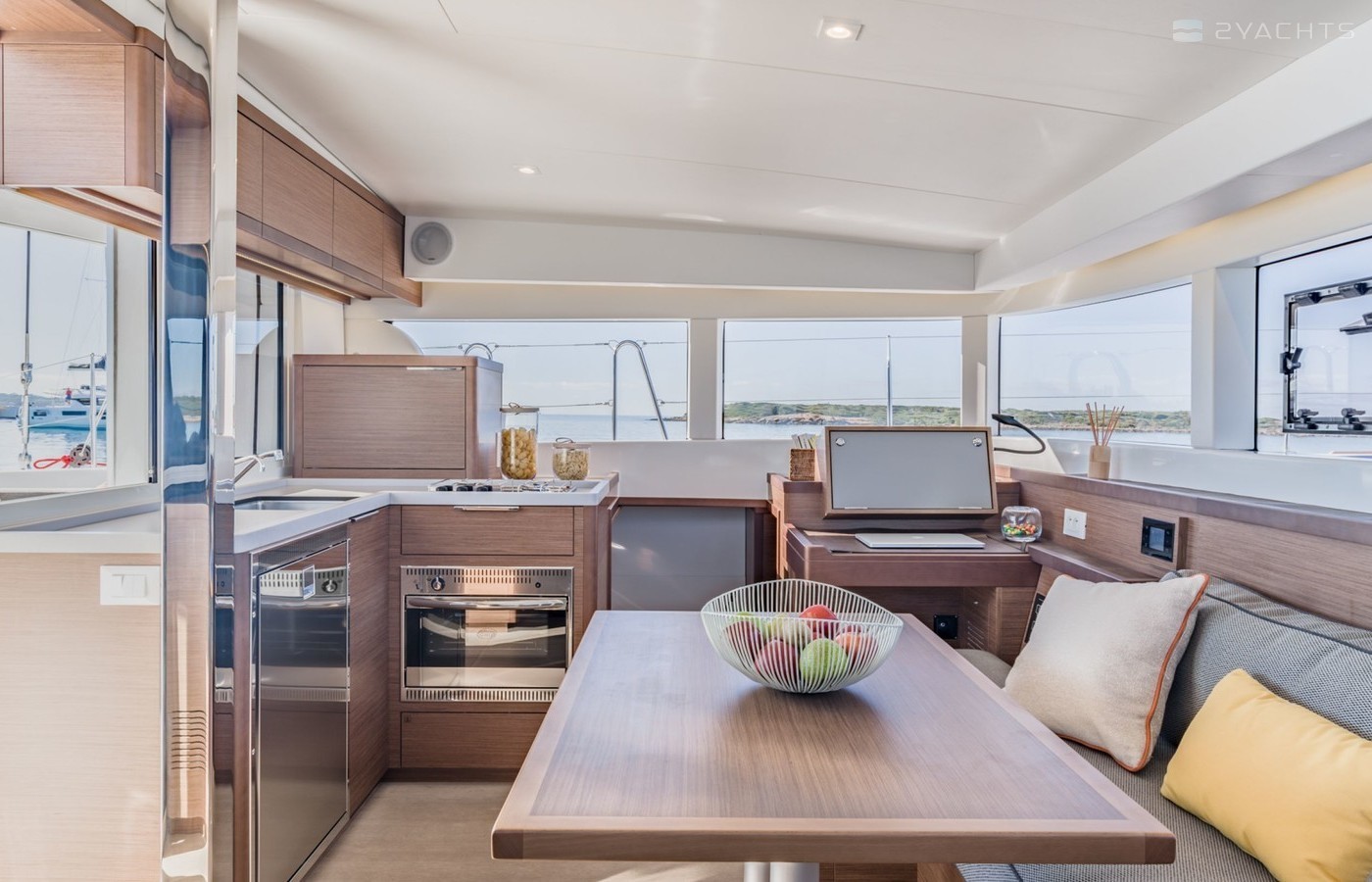 Boat equipment features Classical mainsail, Electric winches, Radar, Bimini and Outside GPS plotter. It also boasts an Audio system, Outside speakers and Inside speakers. The fully-equipped galley includes Oven, Cooker, Sink and Kitchen utensils.