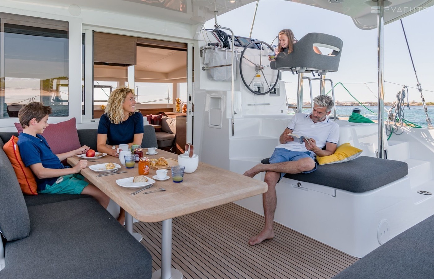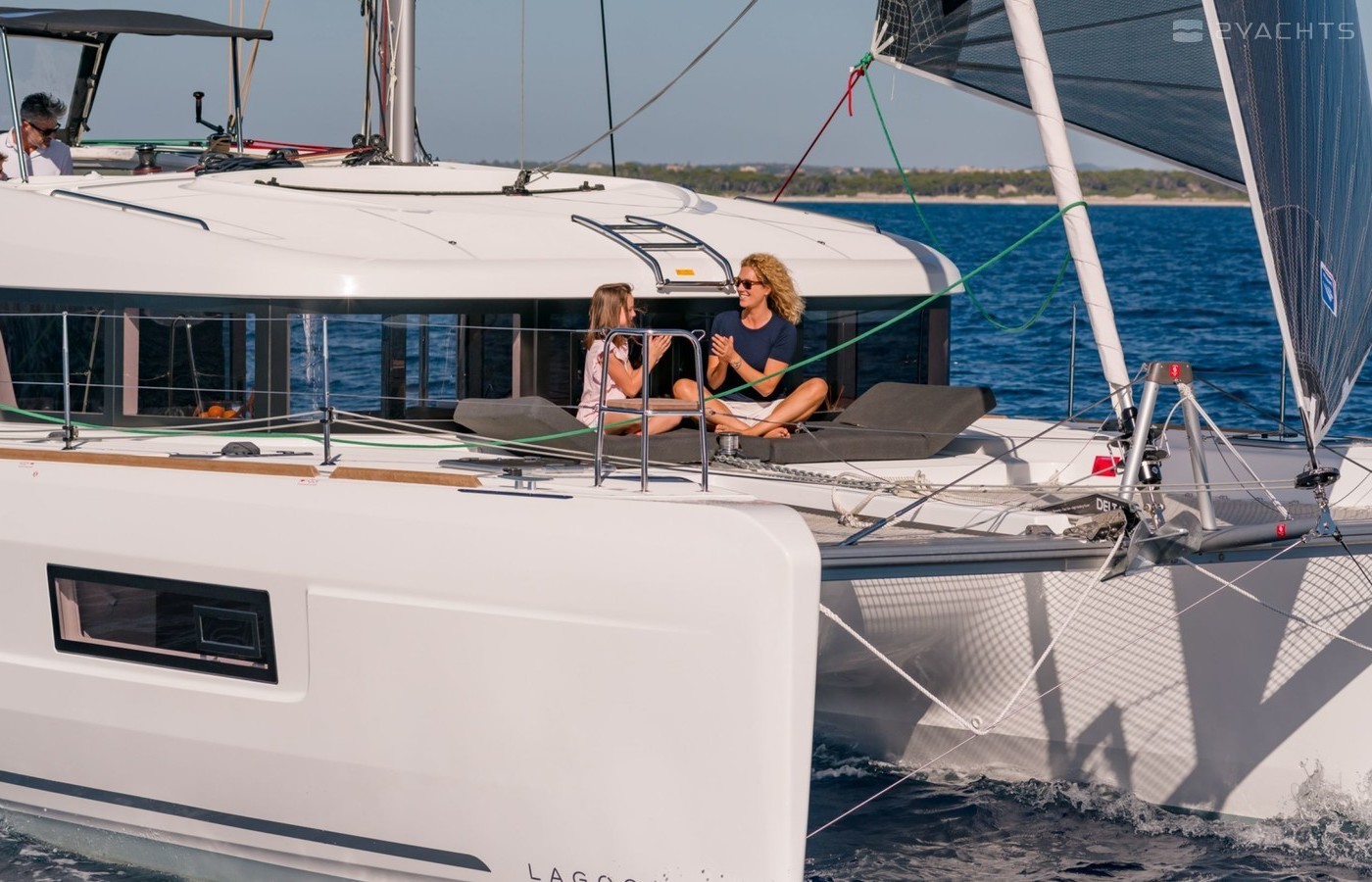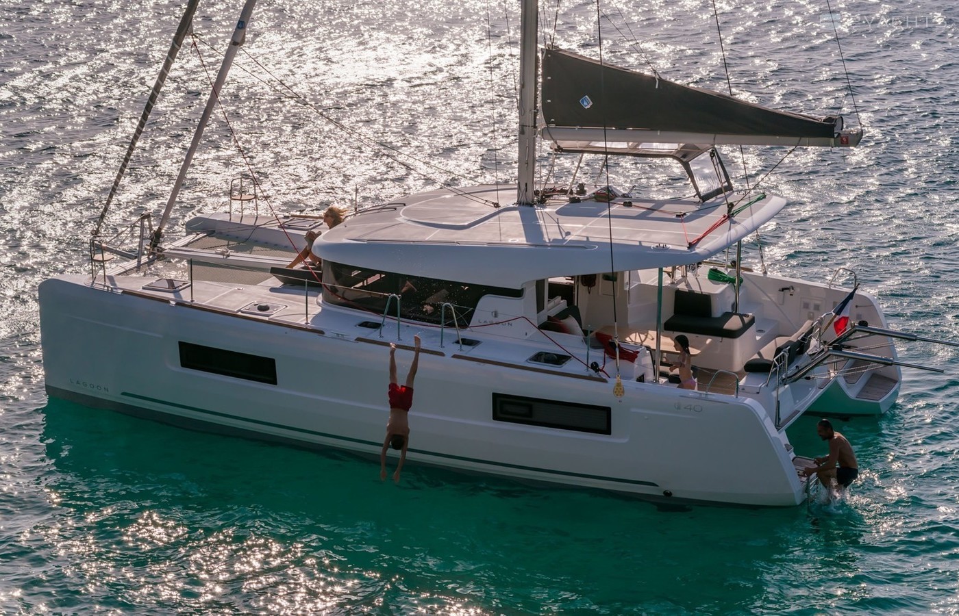 This catamaran is operated by the charter company Ibiza Winds Charter.