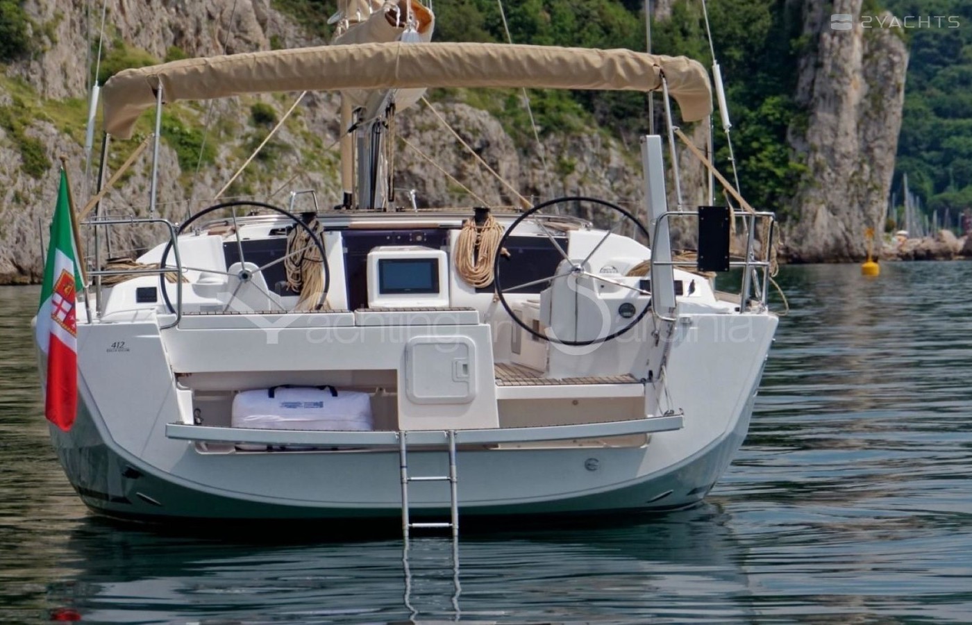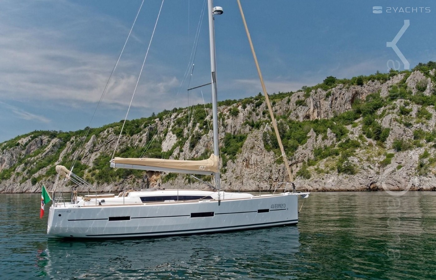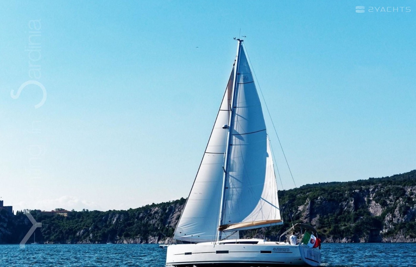 3-cabin sailing yacht Dufour 412 - Pamoja was built in 2021, and it is docked in Punta Nuraghe Pier, Italy.