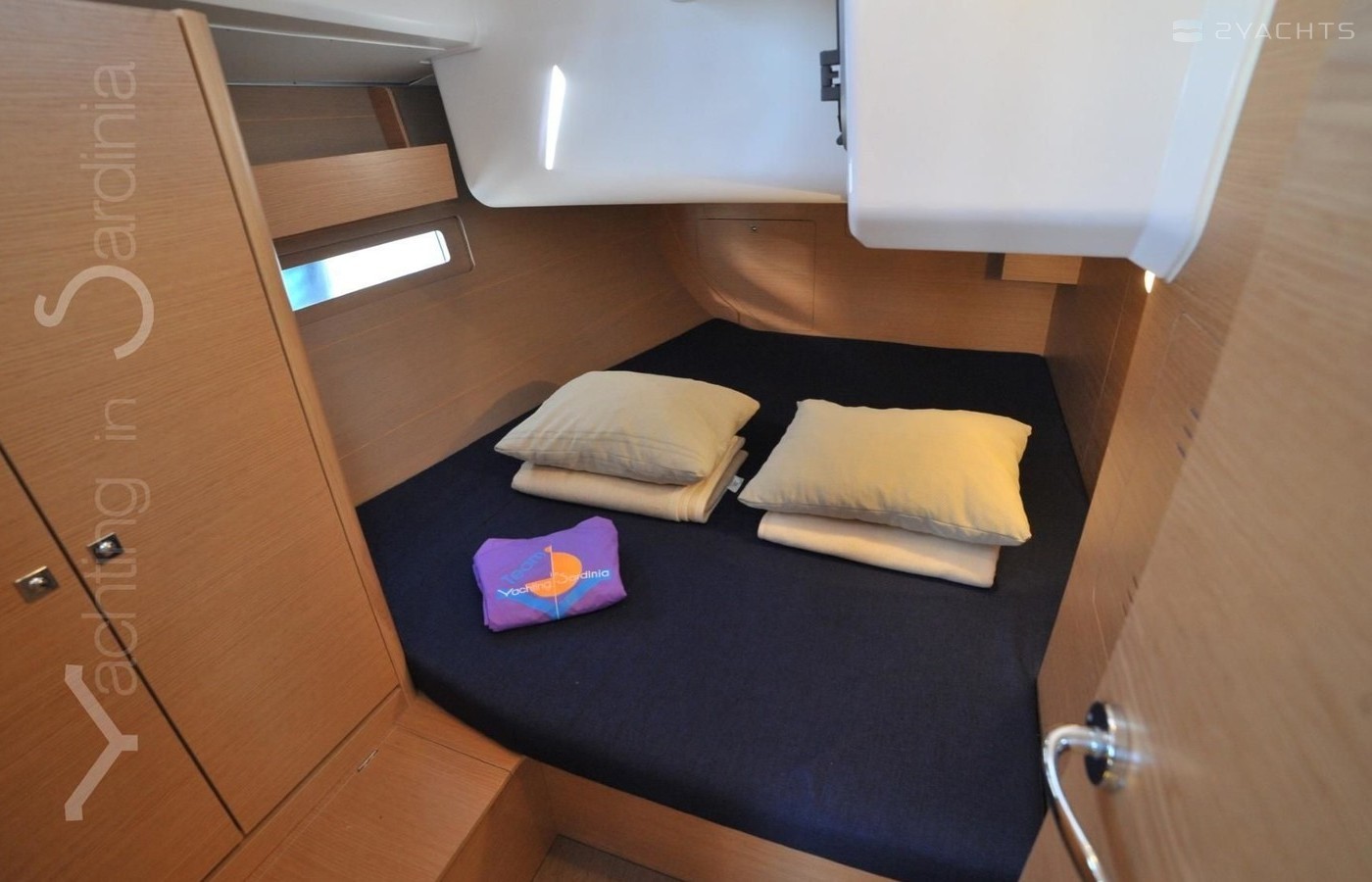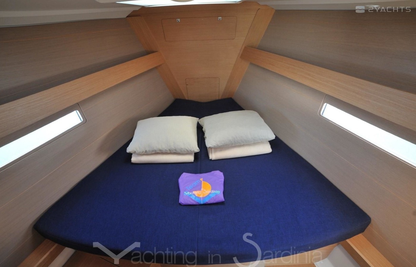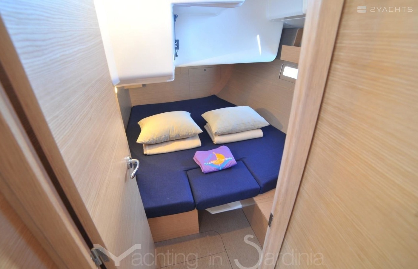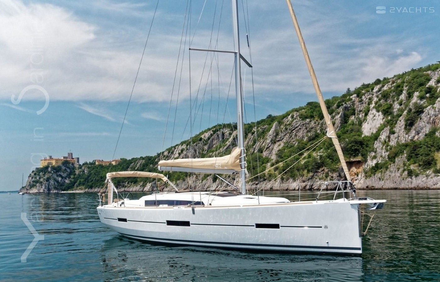 3-cabin sailing yacht Dufour 412 - Pamoja was built in 2021, and it is docked in Punta Nuraghe Pier, Italy.