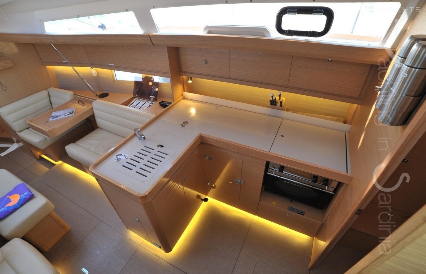 Boat equipment features classical mainsail, electric winches, solar panels, bbq, bimini and bow thruster. It also boasts an an audio system, outside speakers and inside speakers. The fully-equipped galley includes an oven, cooker, sink and kitchen utensils.