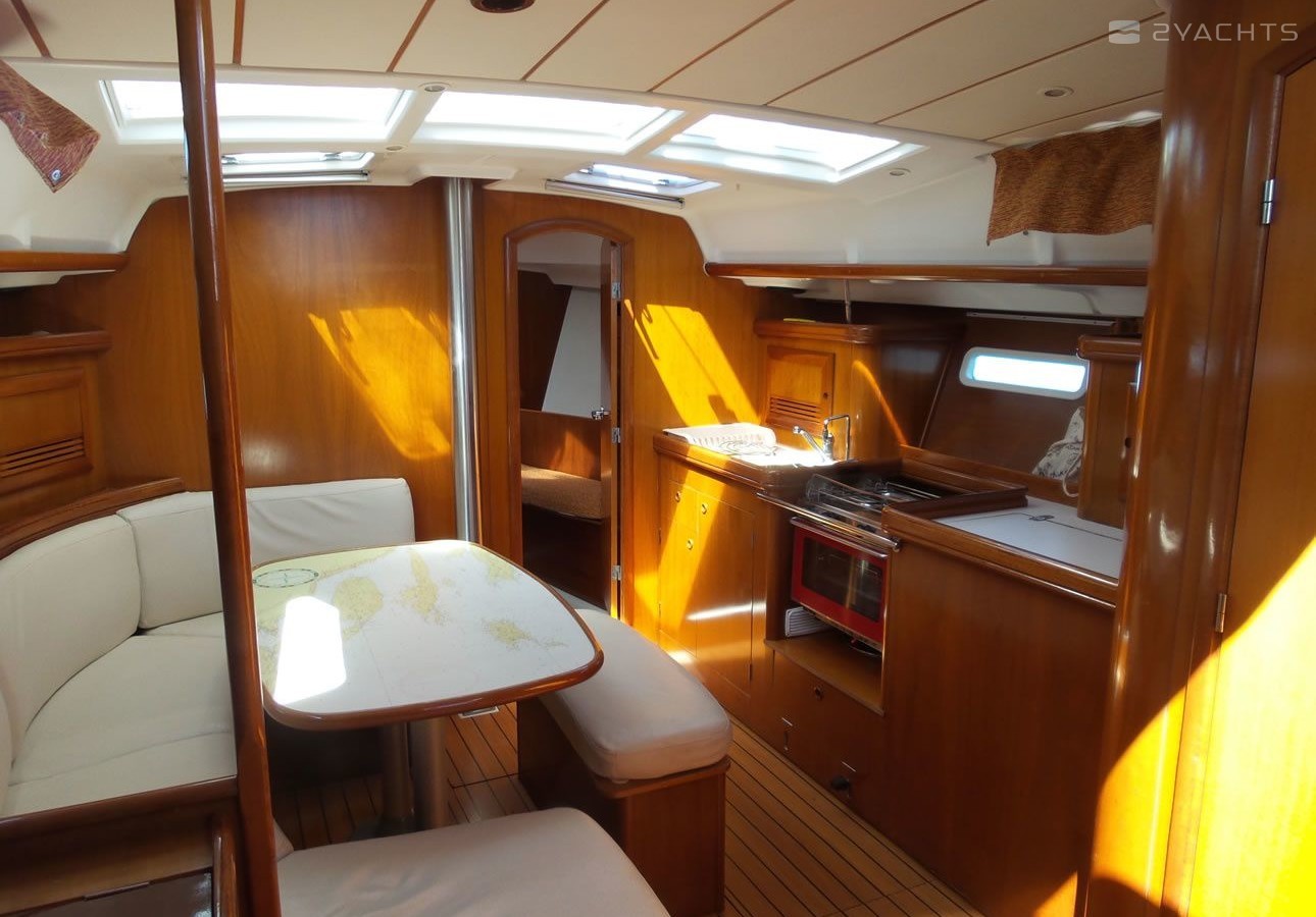 Boat equipment features rolling mainsail, salon gps plotter and bimini. It also boasts an an audio system, outside speakers and inside speakers. The fully-equipped galley includes an oven, cooker, sink and kitchen utensils.