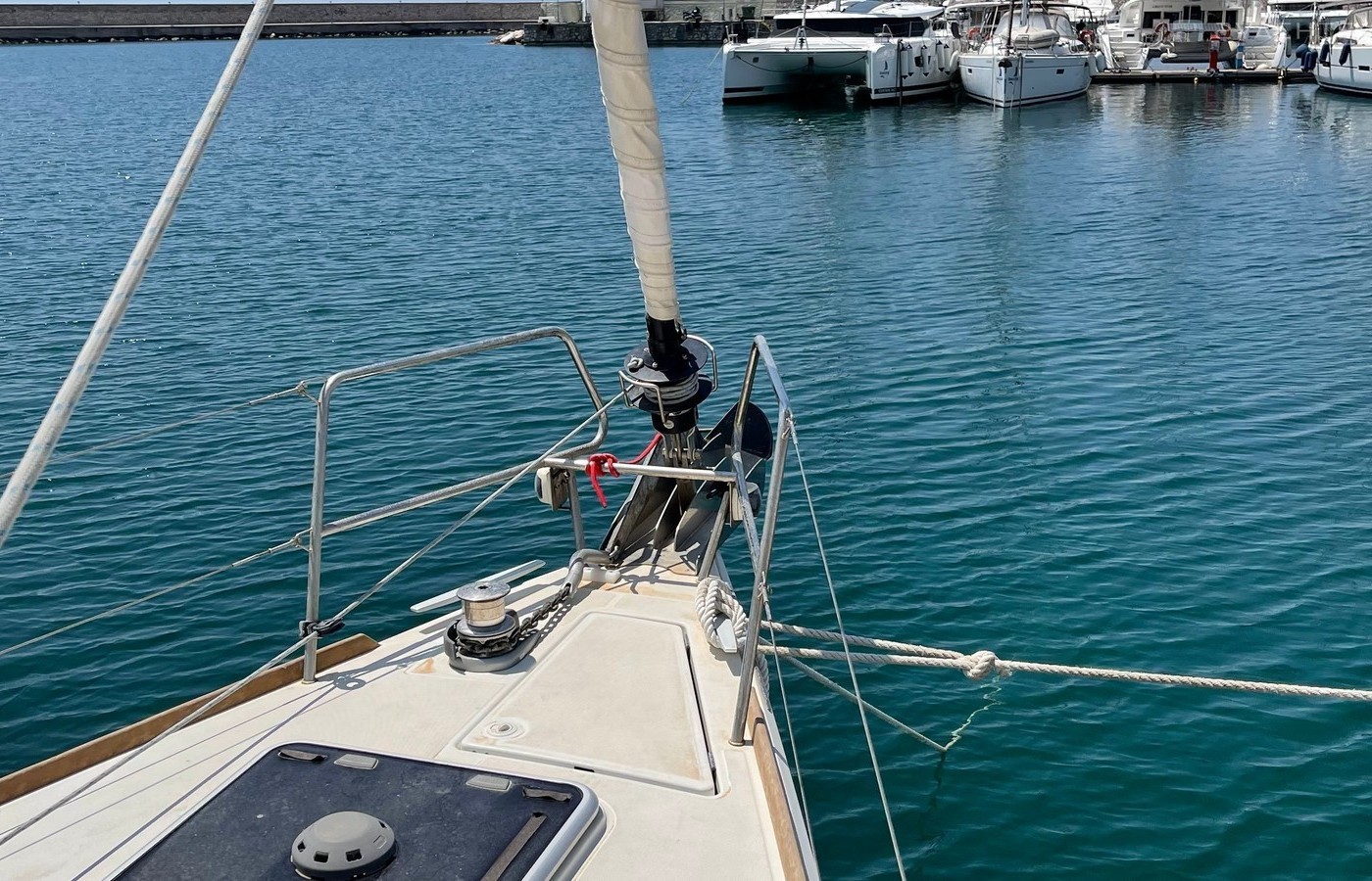Boat equipment features rolling mainsail, bimini and bow thruster. It also boasts an an audio system, outside speakers and inside speakers. The fully-equipped galley includes a freezer, oven, cooker, sink and kitchen utensils.