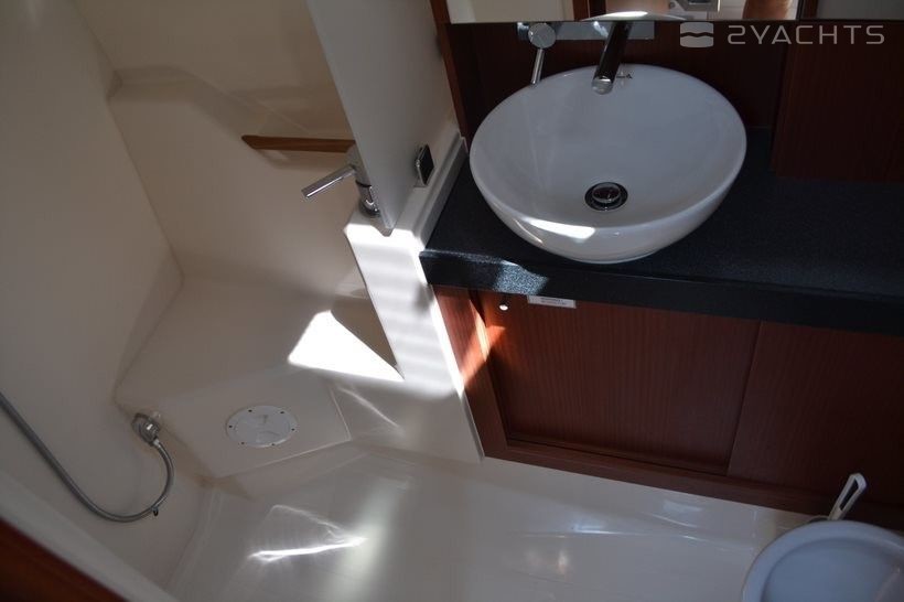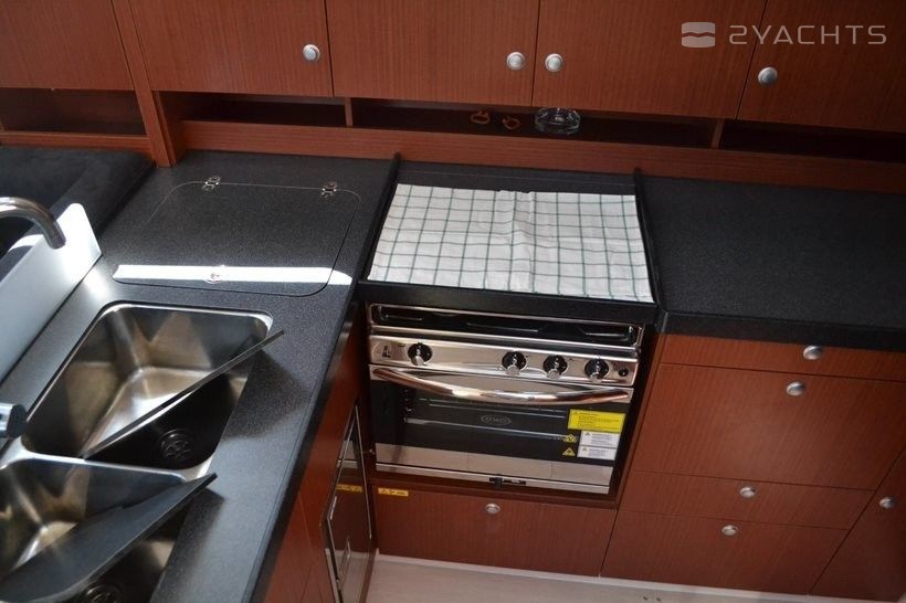 Boat equipment features classical mainsail, electric winches, bimini and bow thruster. It also boasts an an audio system, outside speakers and inside speakers. The fully-equipped galley includes an oven, cooker, sink and kitchen utensils.