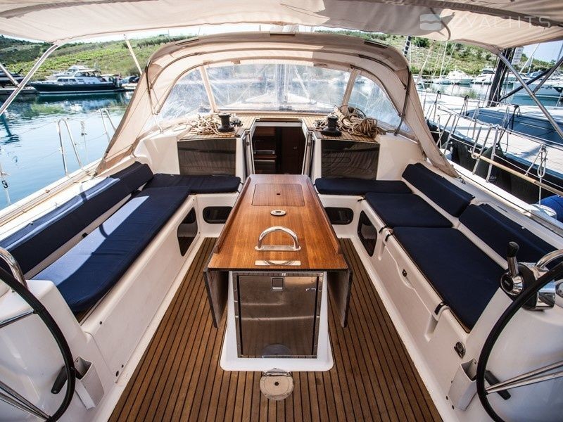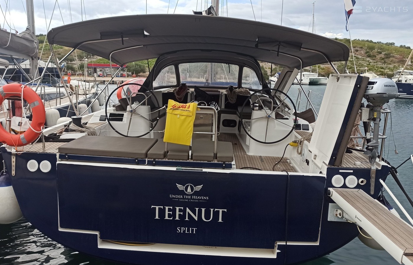 5-cabin sailing yacht Dufour 56 - Tefnut was built in 2017, and it is docked in ACI Marina Dubrovnik, Croatia.
