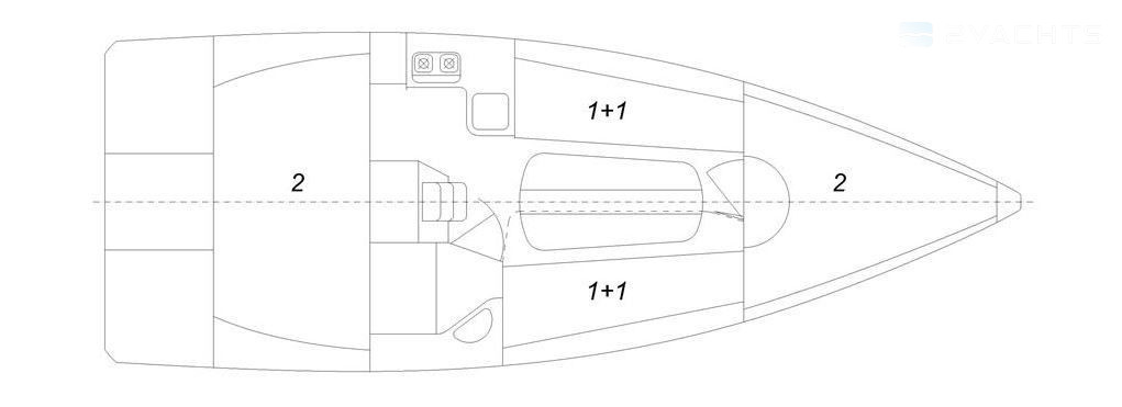 Marsala can accommodate up to 8 people in 2 double cabins and a saloon with 4 extra beds. Pillows and blankets are included in the price.