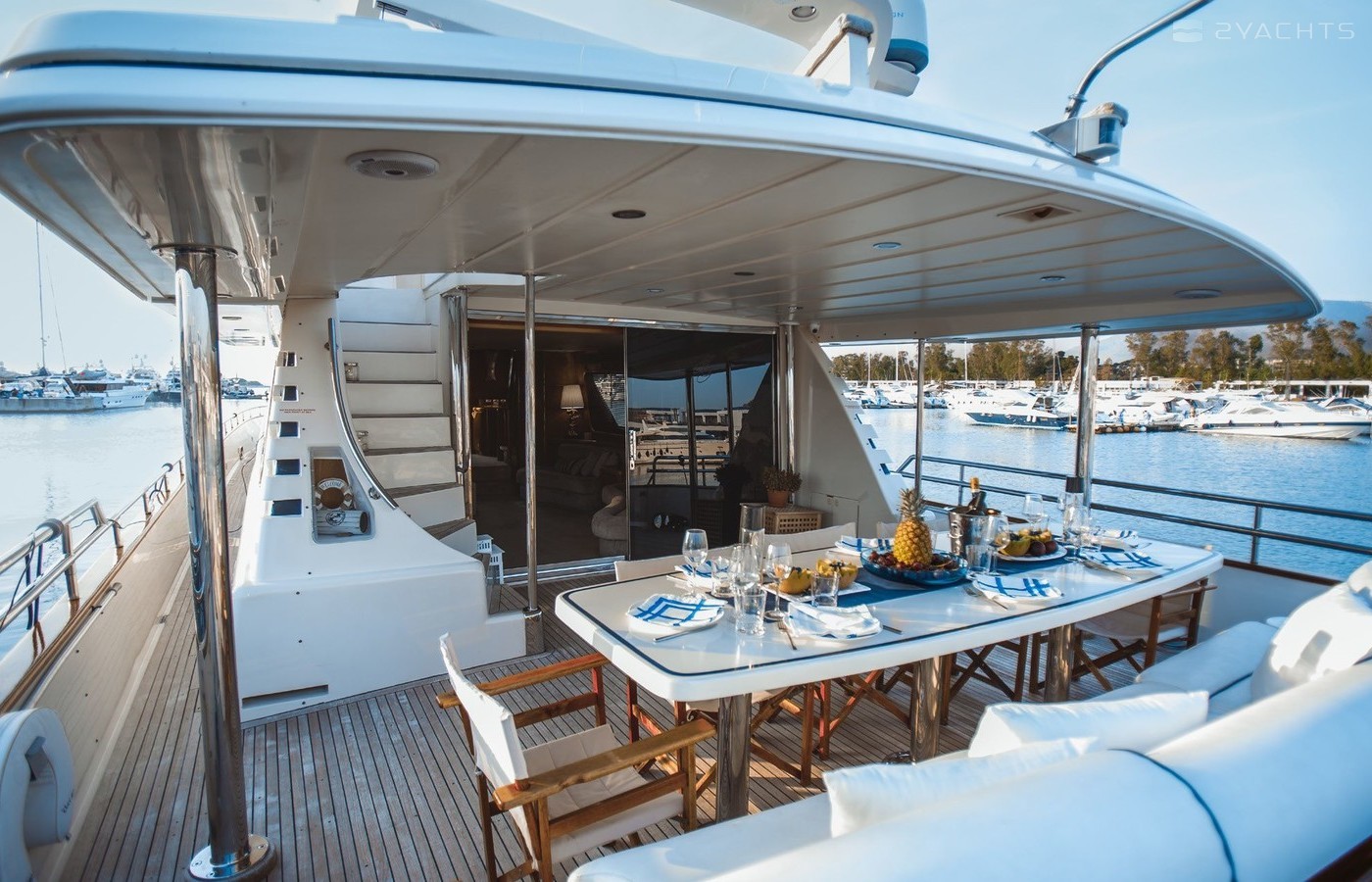 4-cabin motor yacht Elegance 80 - Dream was built in 1995, (renovated in 2018,) and it is docked in Agios Kosmas Marina, Greece.