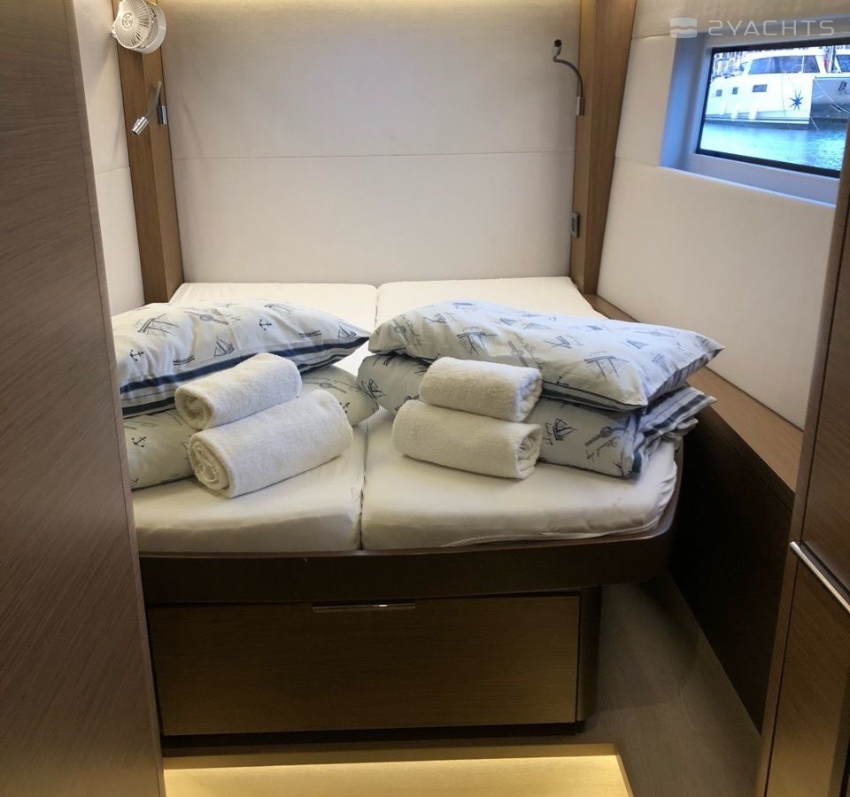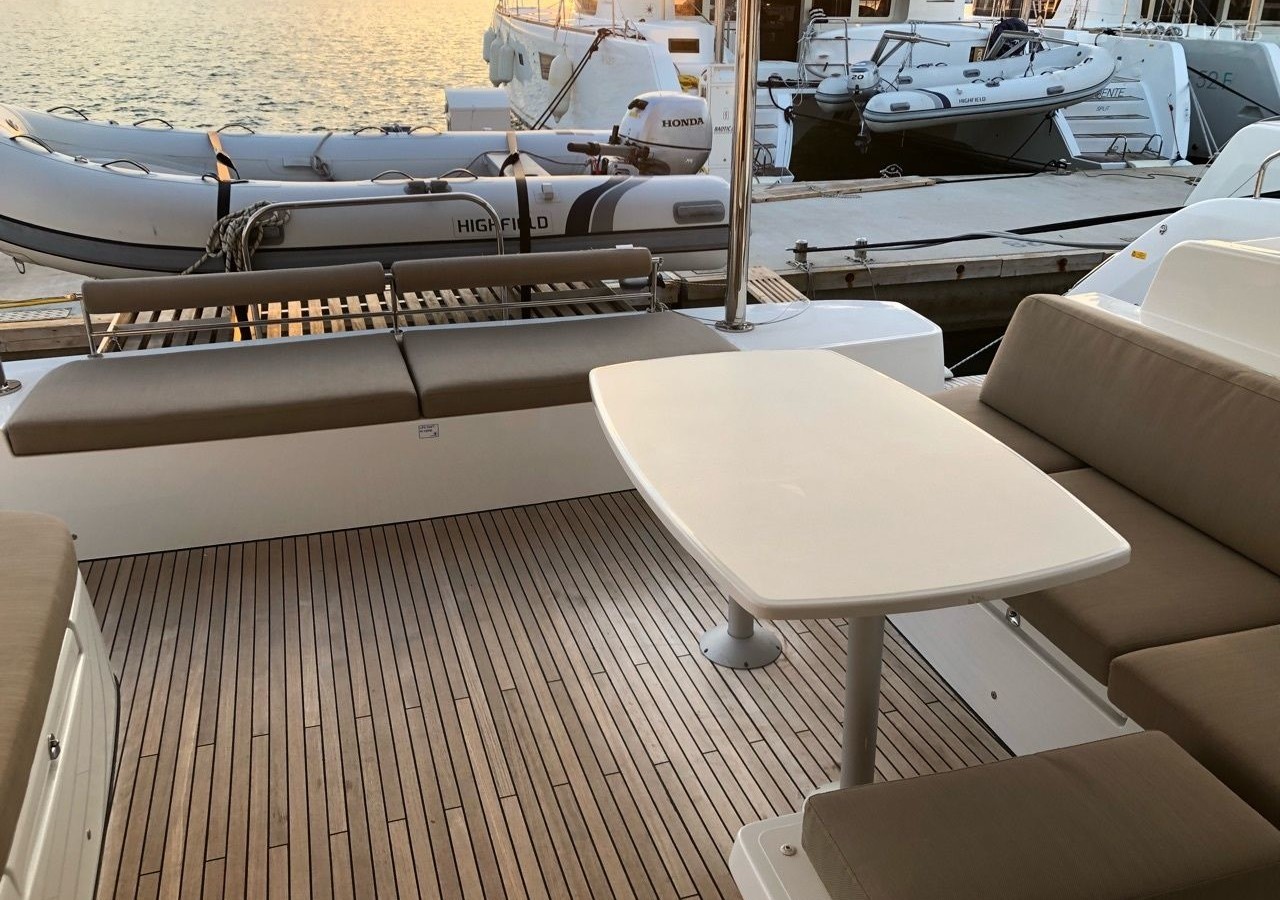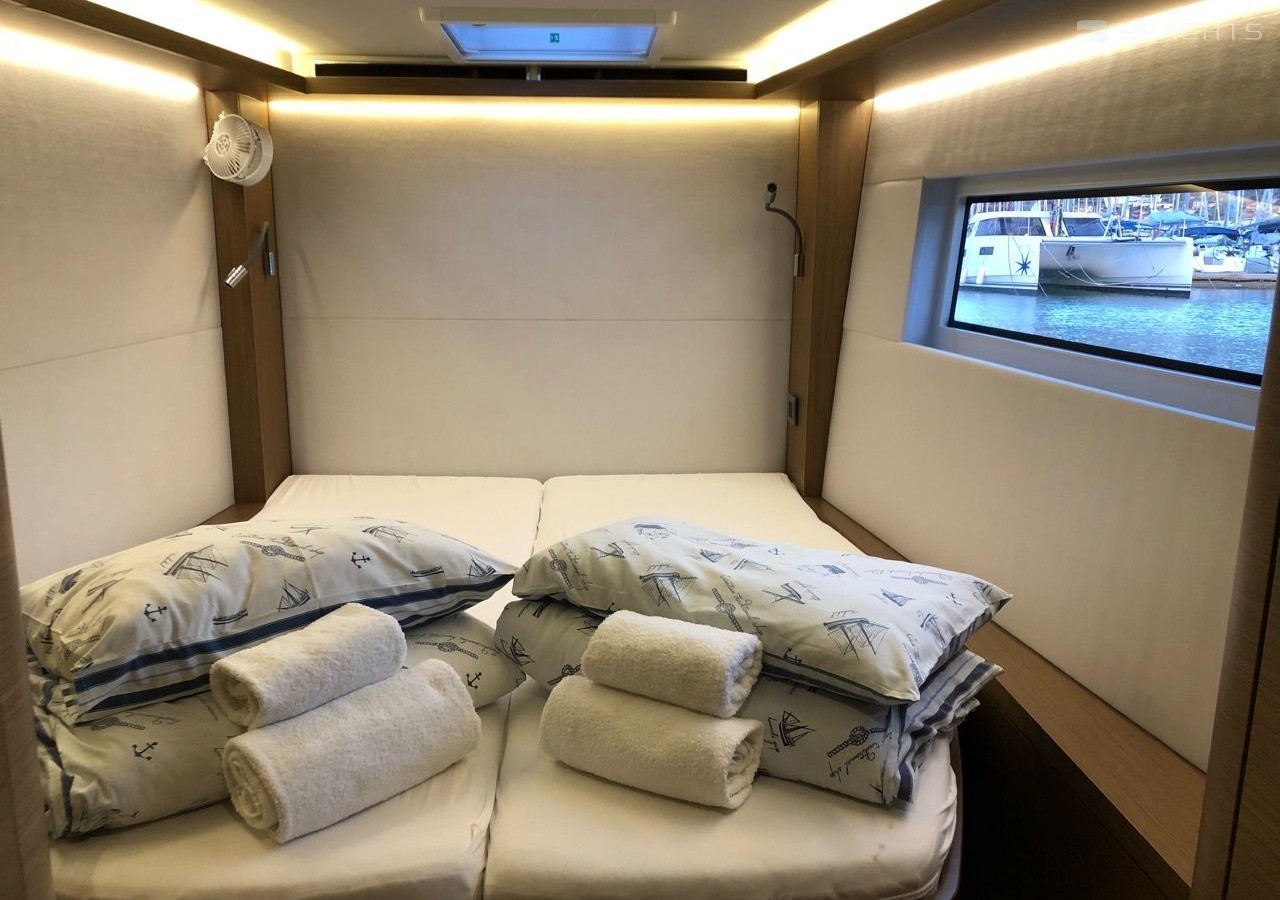 Boat equipment features classical mainsail, generator, bbq, bimini and outside gps plotter. It also boasts a heating, air conditioning, an audio system, outside speakers and flybridge. The fully-equipped galley includes a freezer, oven, cooker, sink and kitchen utensils.
