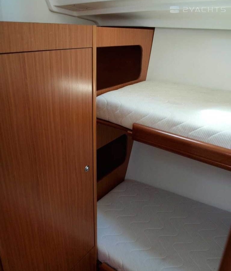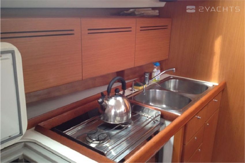 Boat equipment features classical mainsail, electric winches, solar panels, salon gps plotter, bimini and bow thruster. It also boasts an an audio system, outside speakers and inside speakers. The fully-equipped galley includes an oven, cooker, sink and kitchen utensils.