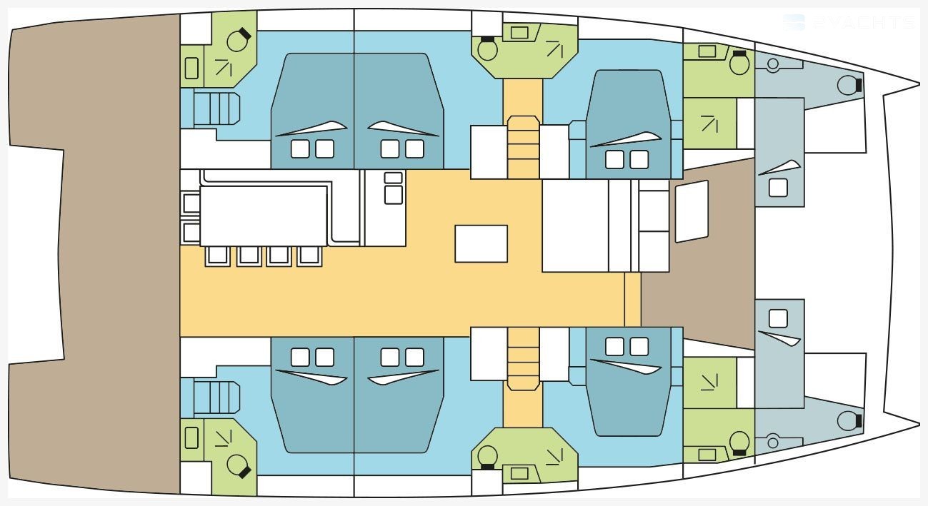 This catamaran is operated by the charter company Dream Yacht Charter.