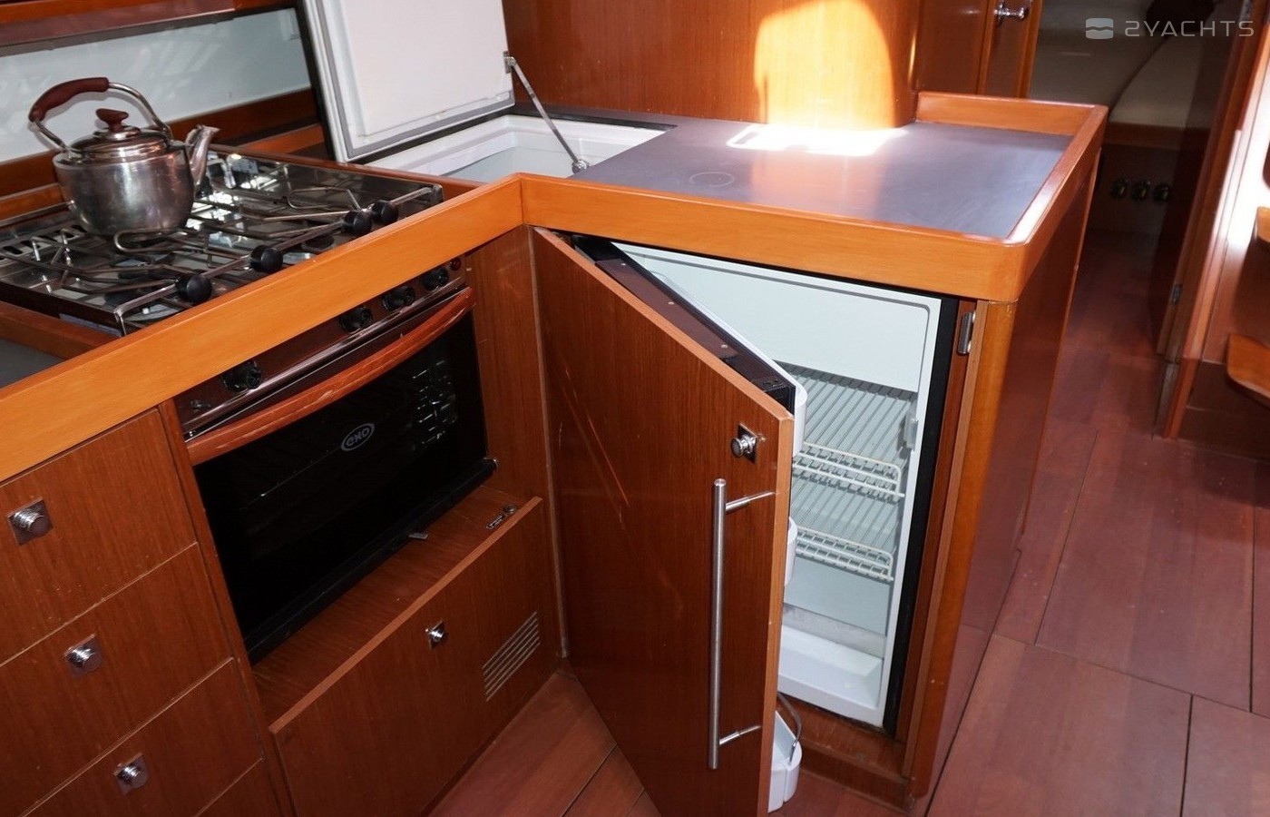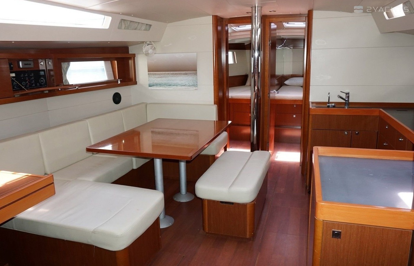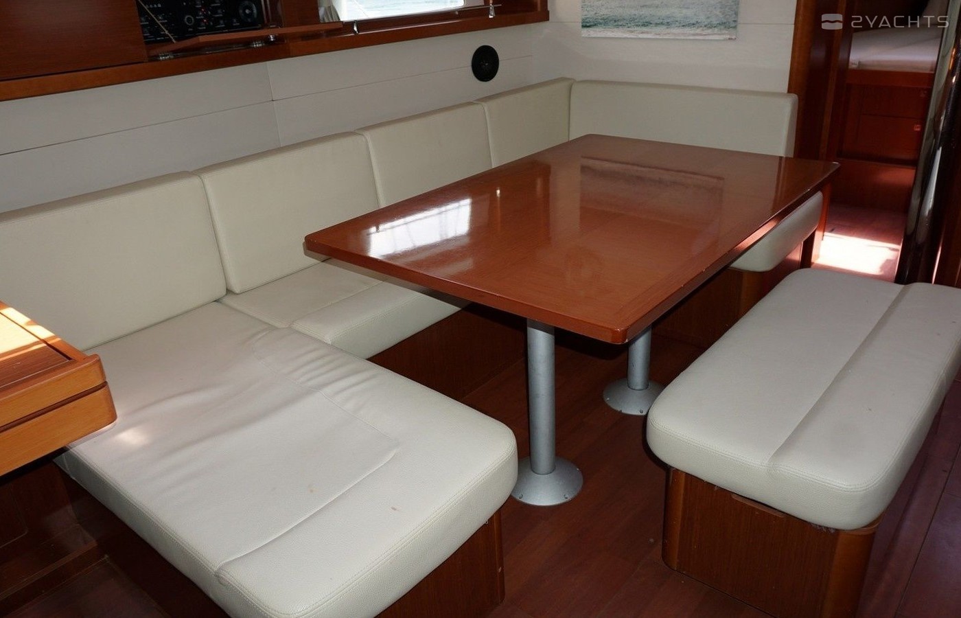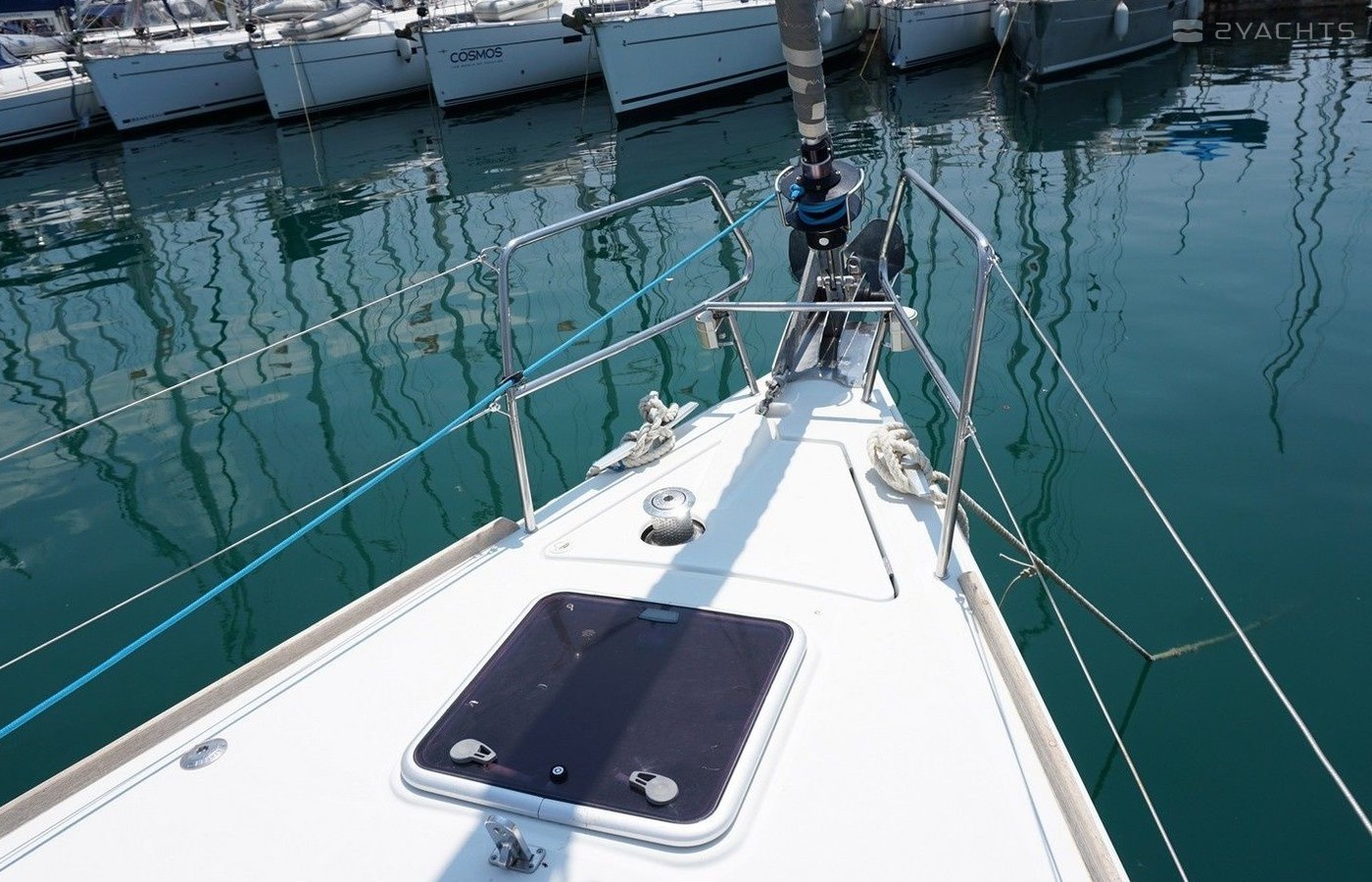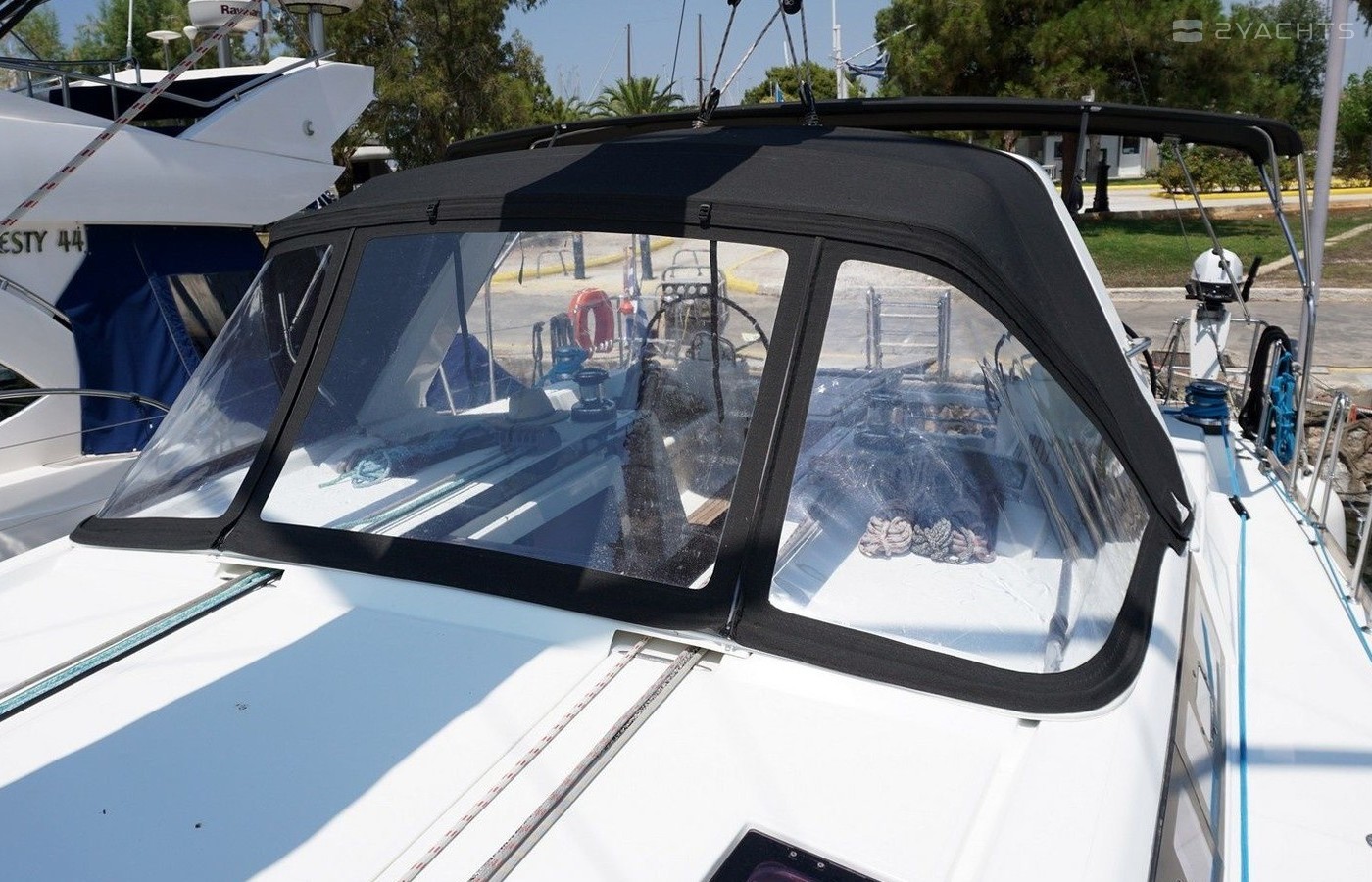 Boat equipment features classical mainsail, bimini and bow thruster. It also boasts an an audio system, outside speakers and inside speakers. The fully-equipped galley includes an oven, cooker, sink and kitchen utensils.