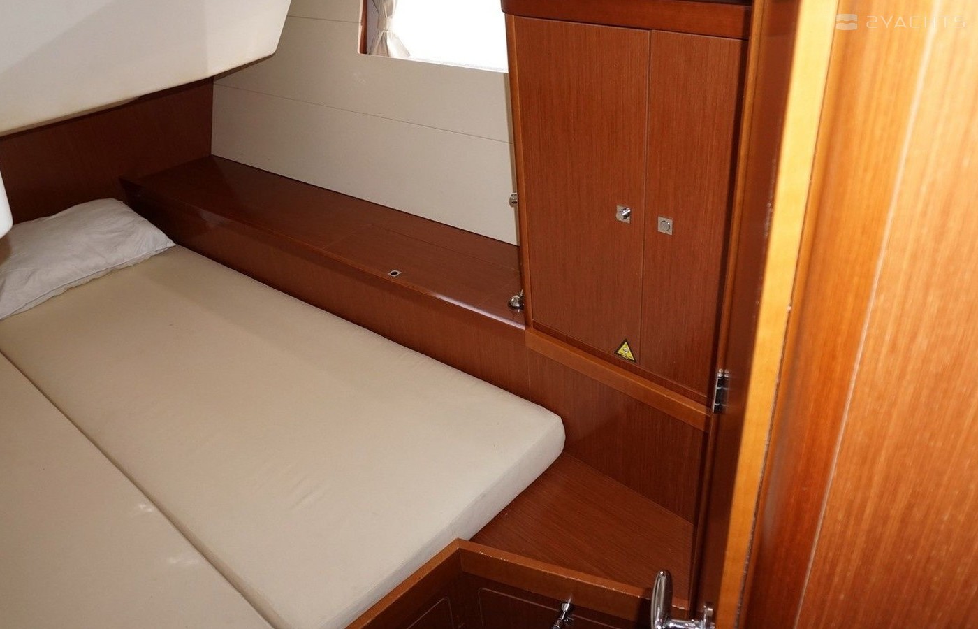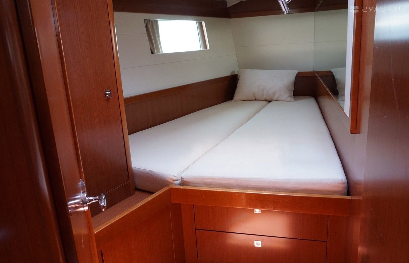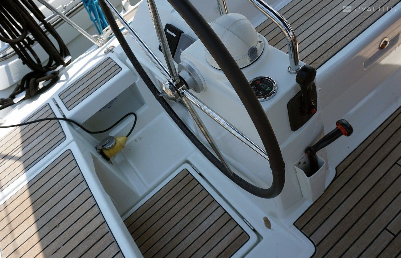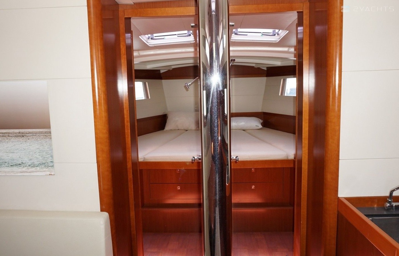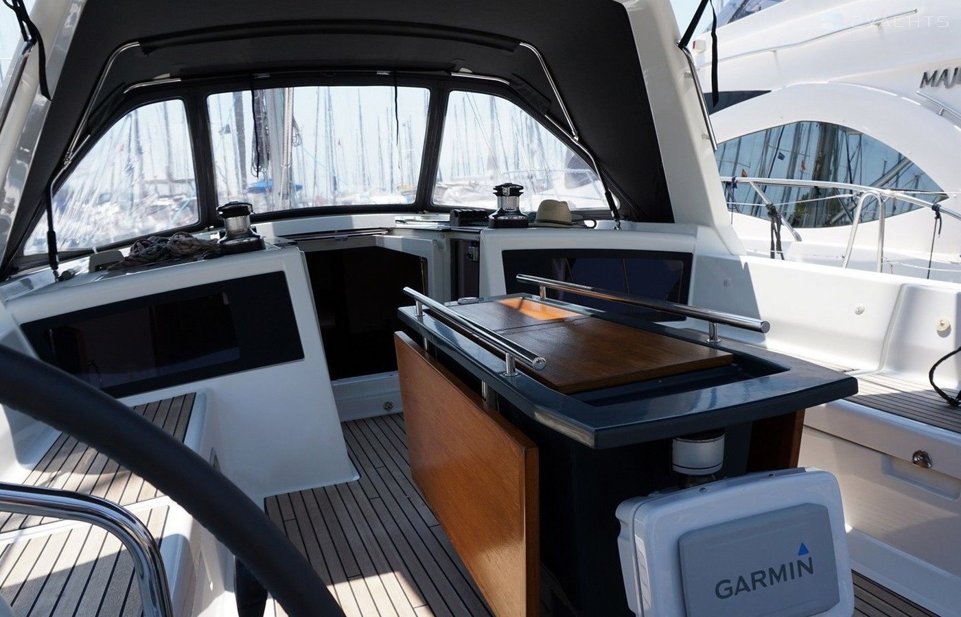 Boat equipment features classical mainsail, bimini and bow thruster. It also boasts an an audio system, outside speakers and inside speakers. The fully-equipped galley includes an oven, cooker, sink and kitchen utensils.
