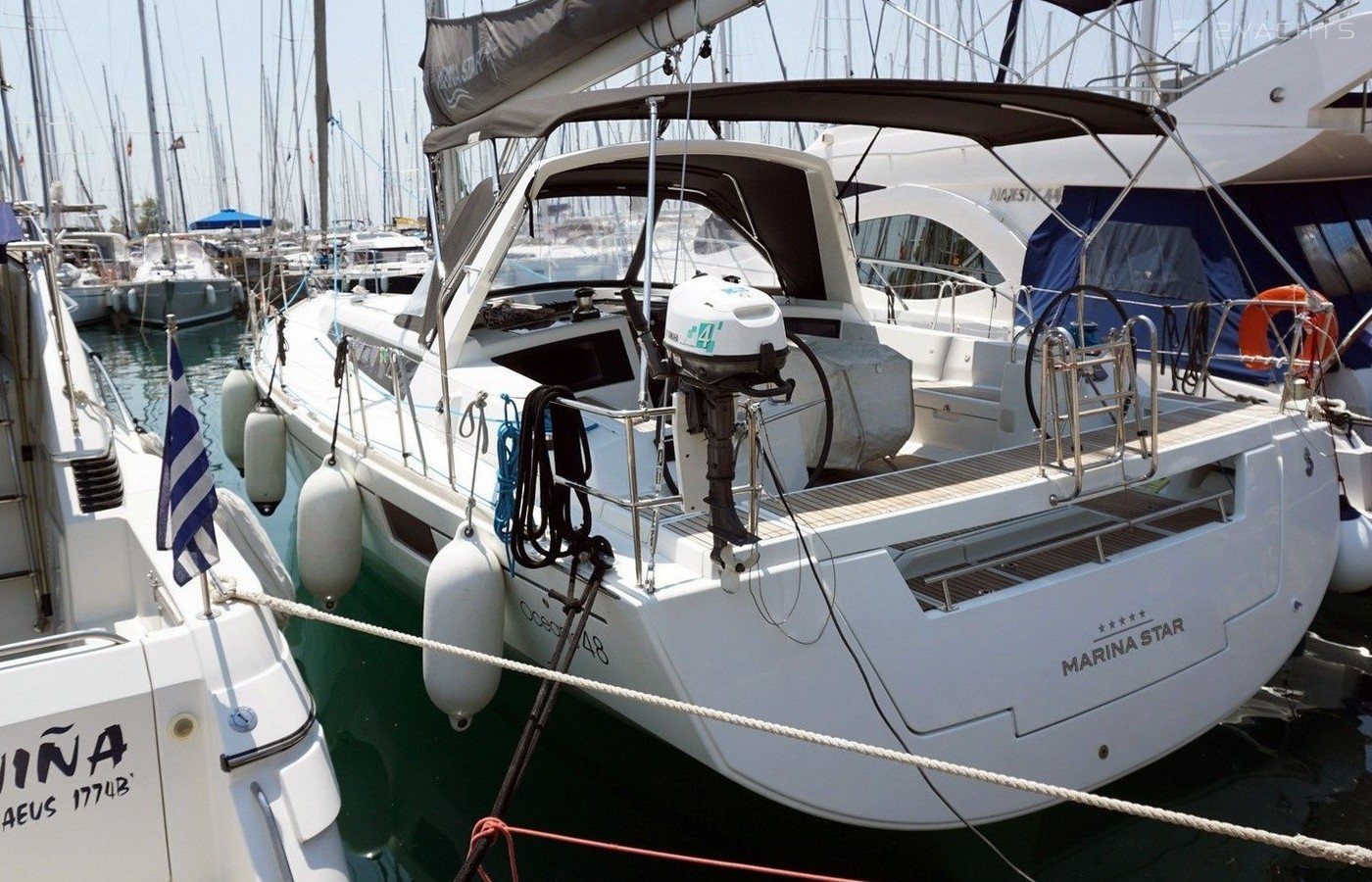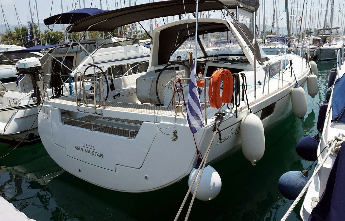 5-cabin sailing yacht Beneteau Oceanis 48 - Marina Star was built in 2012, and it is docked in Marina Alimos, Greece.