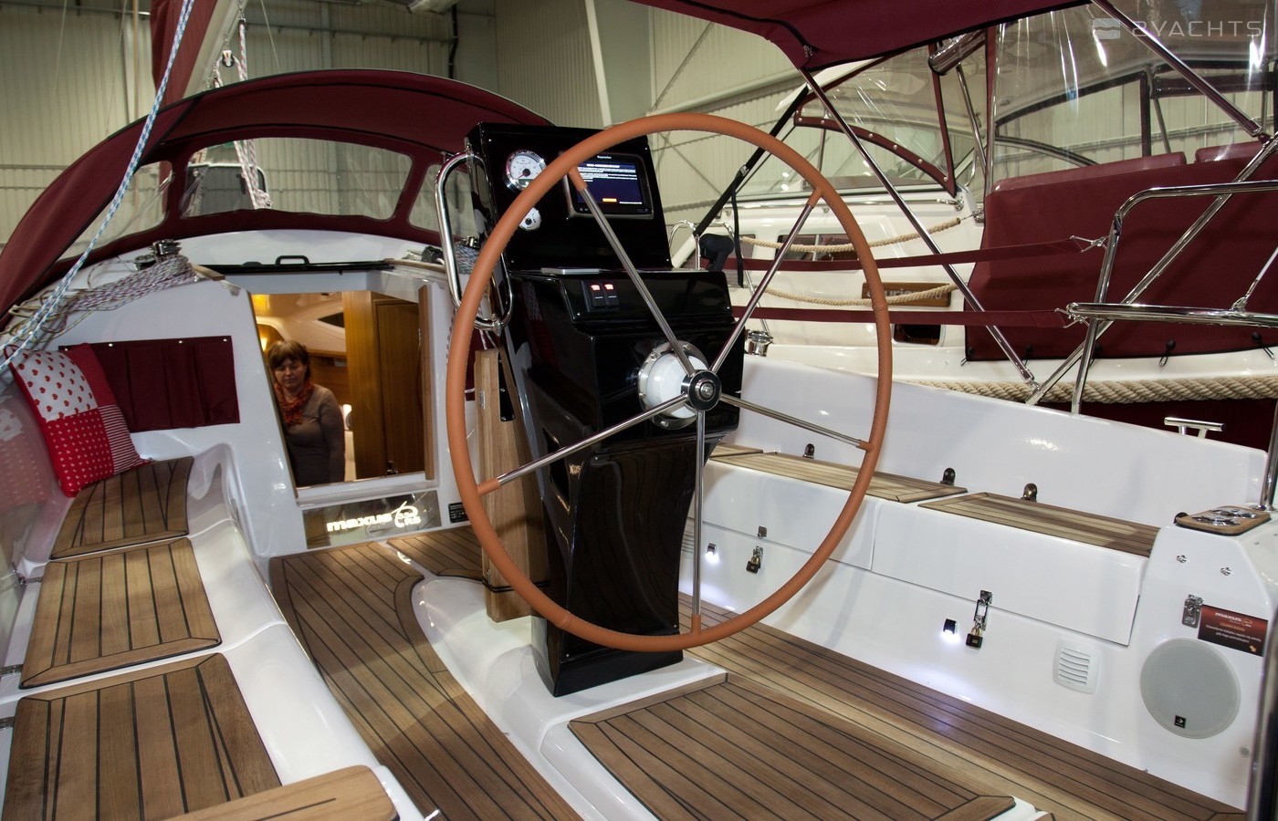 Boat equipment features classical mainsail, bimini and bow thruster. It also boasts a flat screen tv, heating, an audio system, outside speakers and inside speakers. The fully-equipped galley includes a microwave, cooker, sink and kitchen utensils.