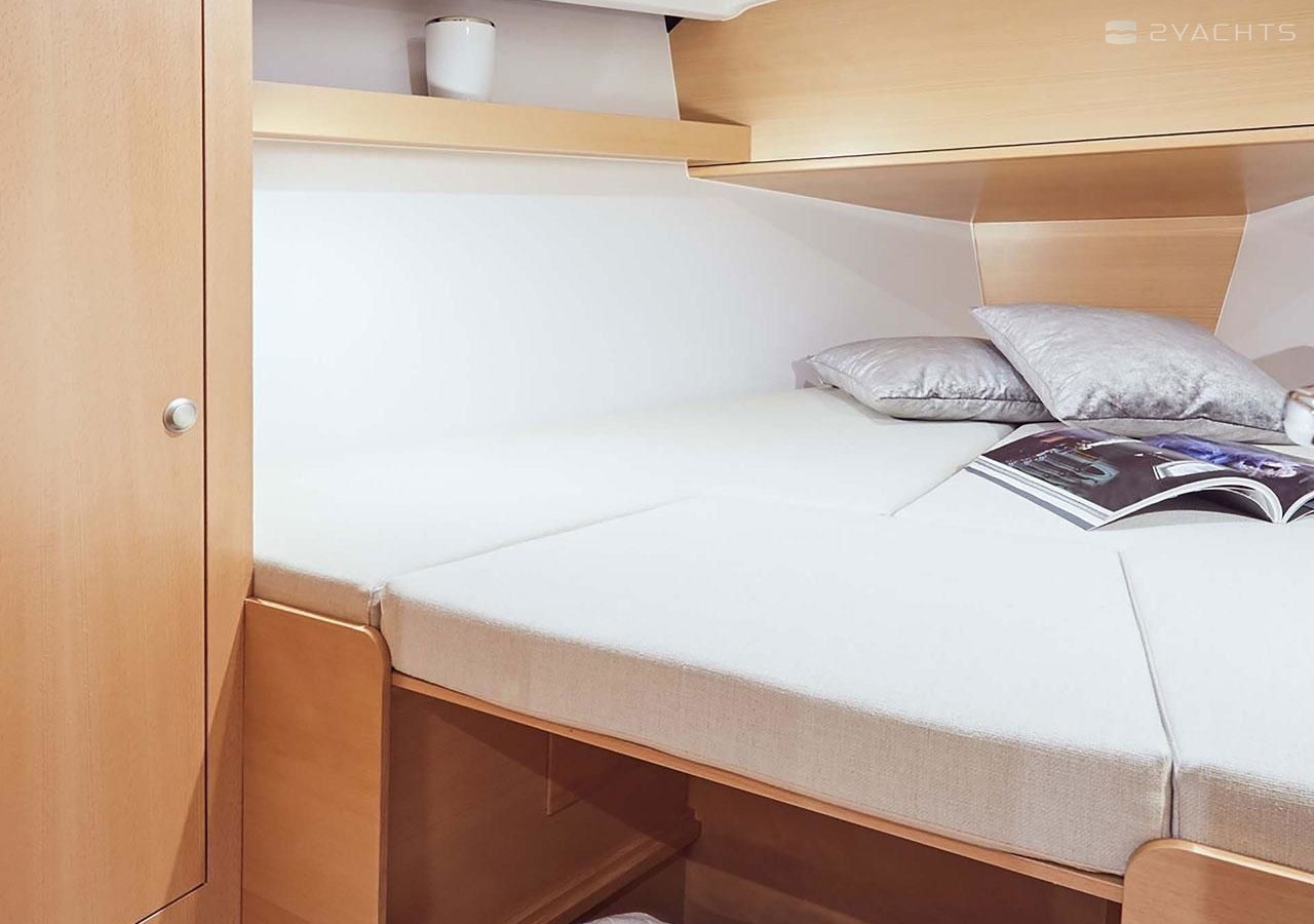 Sunsail 19 can accommodate up to 6 people in 2 double cabins and a saloon with 2 extra beds. Pillows and blankets are included in the price.
