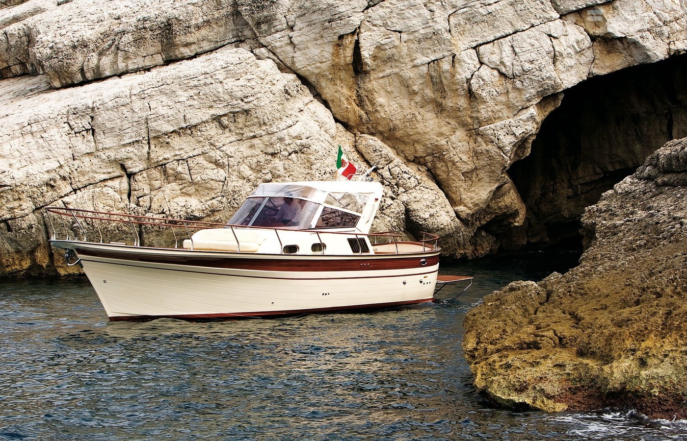 This motorboat is operated by the charter company Fratelli Aprea Luxury Charter.