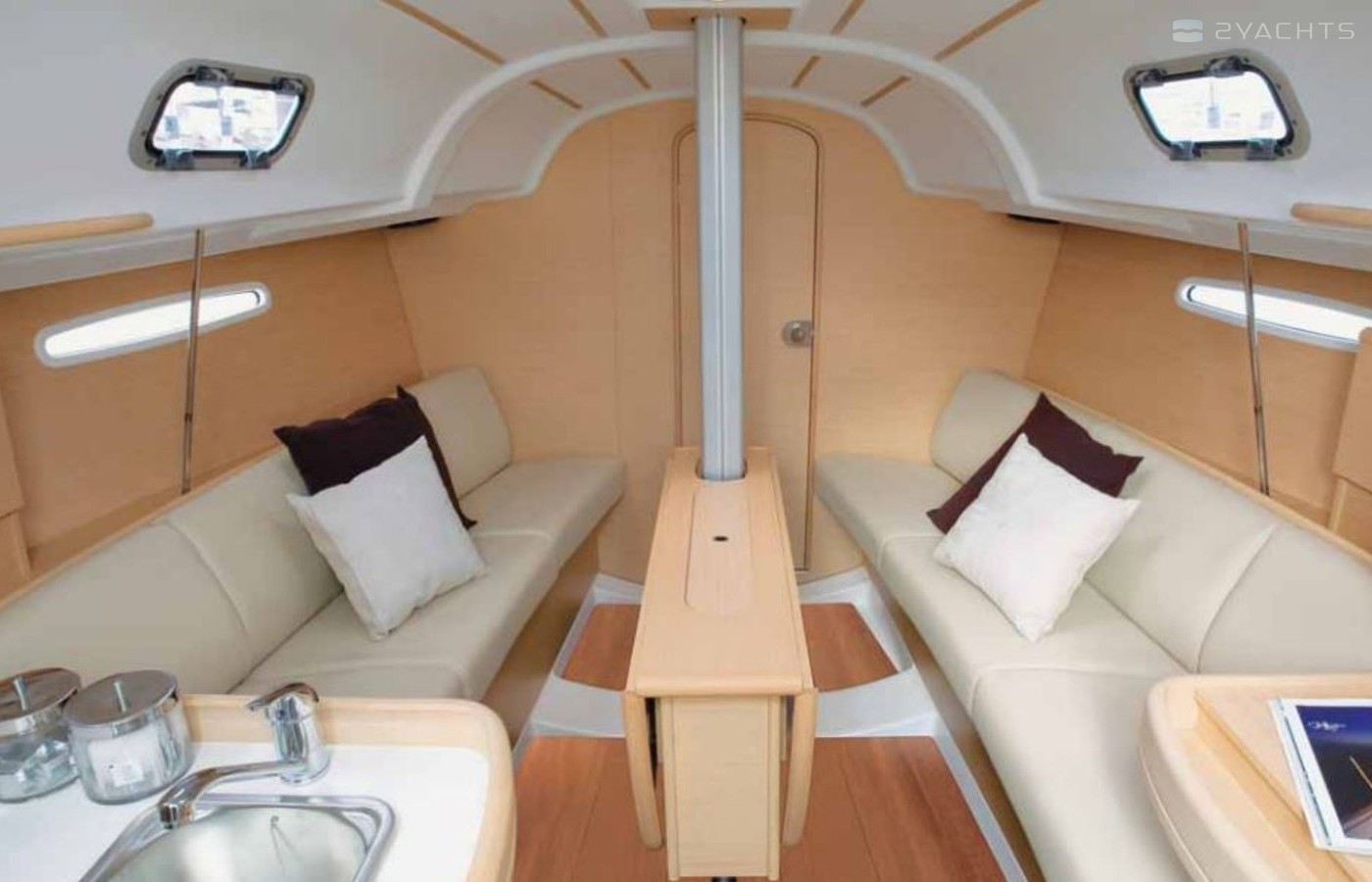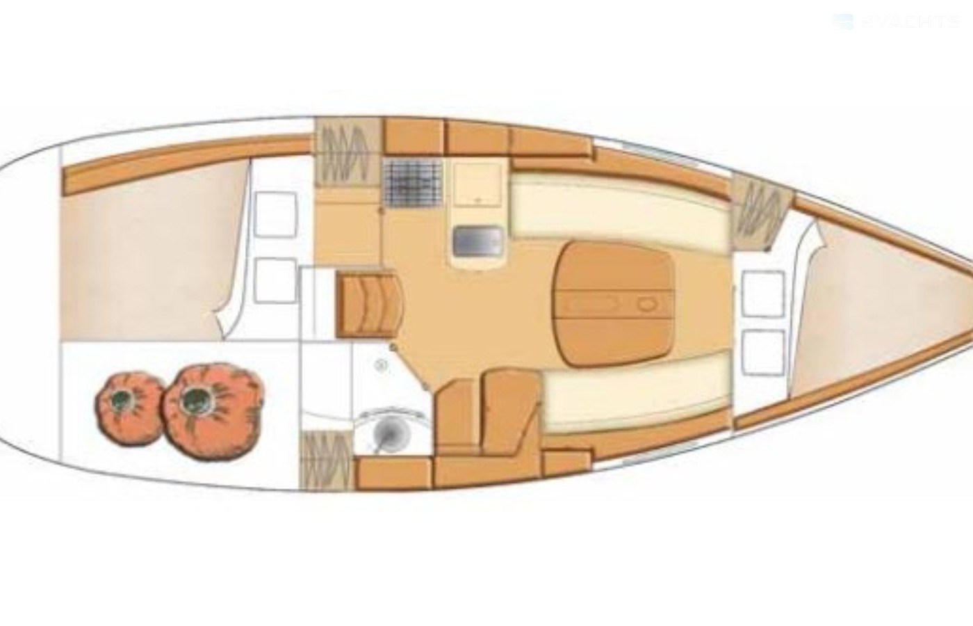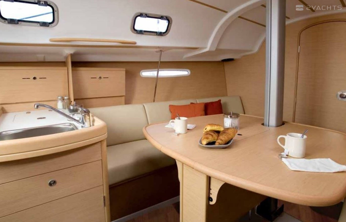 Boat equipment features classical mainsail and outside gps plotter. It also boasts an an audio system and inside speakers. The fully-equipped galley includes an oven, cooker, sink and kitchen utensils.
