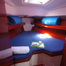 9 Muses can accommodate up to 6 people in 2 double cabins and a saloon with 2 extra beds. Pillows and blankets are included in the price.